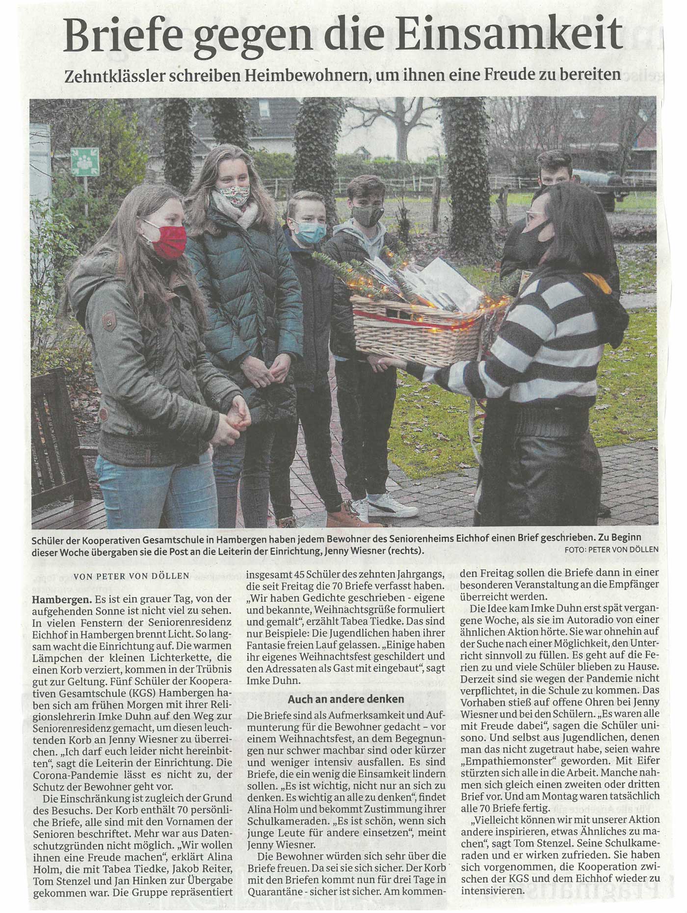 Briefe gegen die Einsamkeit Zehntklässler schreiben Heimbewohnern, um ihnen eine Freude zu bereiten.