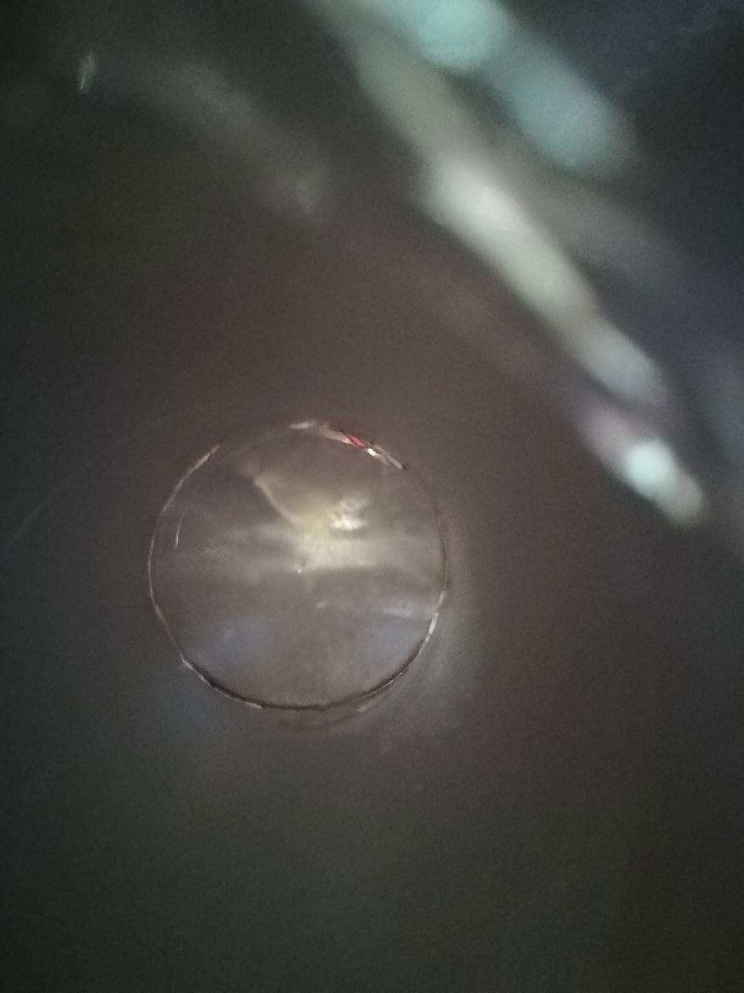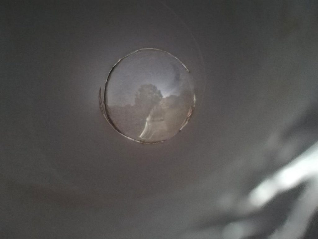 In der Dunkelheit des Raumes legten wir das Fotopapier in die Cameras ein. Anschließend ging es nach draußen, wo die Camera Obscura an einem geeigneten Ort aufgestellt wurde, um „Fotos zu machen“. Nach einiger Zeit kehrten wir in den NW-Raum zurück, wo wir vorsichtig mit Handschuhen, Zangen und lediglich dem Licht einer roten Glühbirne das lichtempfindliche Fotopapier von der Rückwand der Camera Obscura lösten. Das Fotopapier besteht übrigens aus einem mit Kunststoff (PE) beschichteten Papierträger und einem Gemisch, das als Bindemittel Gelatine und lichtempfindliche Silbersalzkristalle (Silberchlorid, Silberbromid, Silberjodid) enthält.