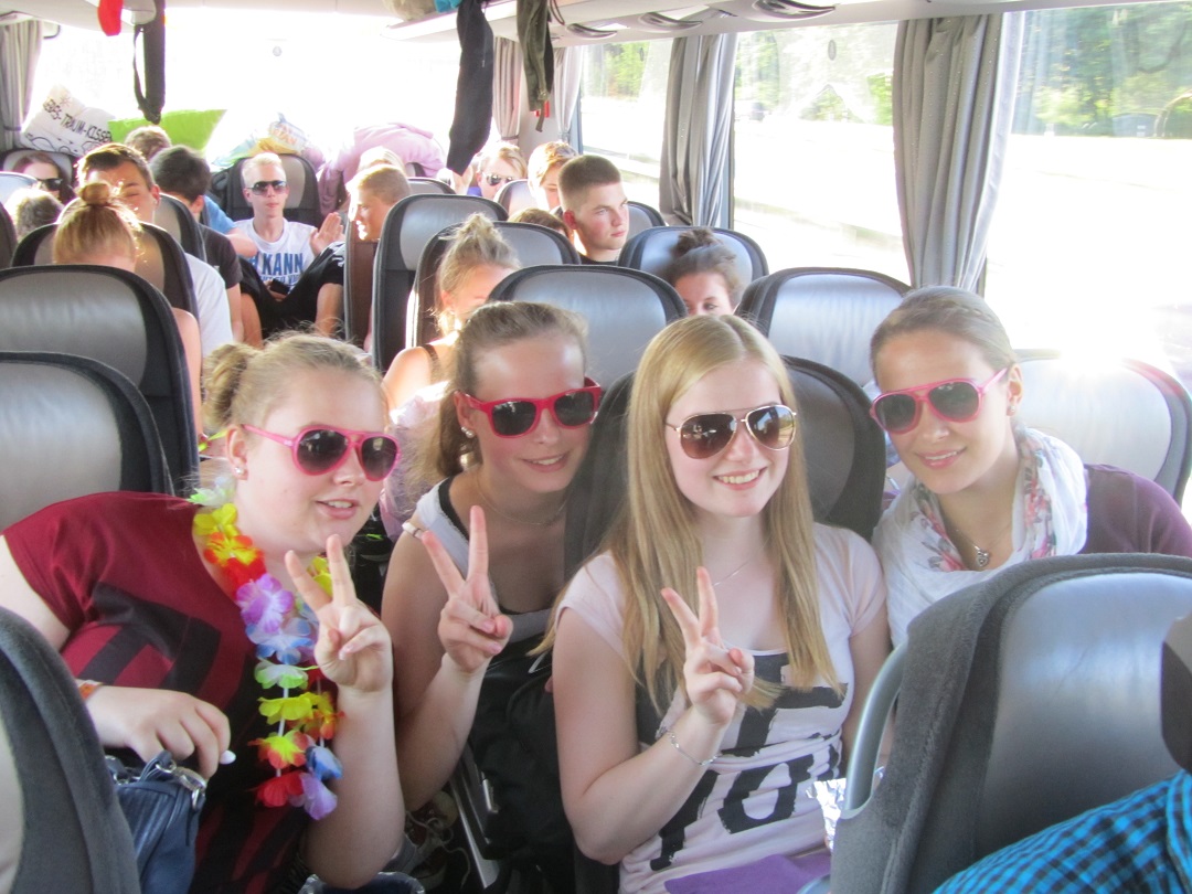 Für die Klassen 10.2 und 10.5 startete die Abschlussfahrt am späten Nachmittag des 15.06.2014. Mit dem Bus ging es 20 Stunden Richtung Süden. Ziel war der Gardasee, den wir am Montagmittag bei strahlendem Sonnenschein erreichten. Unsere Unterkünfte bestanden aus Hütten, die auf einem Campingplatz mit angrenzendem Hotel standen. Von hier aus hatten wir einen direkten Zugang zum See. In den nächsten Tagen unternahmen wir Ausflüge nach Verona und Venedig. Am Gardasee besuchten wir zudem Sirmione und machten eine Schnellbootfahrt rund um die Halbinsel. Alles in allem eine gelungene Fahrt mit tollem Wetter und viel zu sehen! Auf der Busfahrt nach Italien Fußball-WM vor einer Hütte mit TV Am See direkt vor unserem Platz Vor der Arena in Verona Bootsfahrt um Sirmione Full Speed auf dem See Im Gedränge auf der Rialto-Brücke Gondeln in Venedig Auf dem Canale Grande Auf unserem Campingplatz
