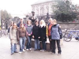 Am Freitagabend, der letzte Abend in Ballyshannon, hat der Großteil der Gruppe sich dazu entschieden, mit den irischen Austauschschülern in eine Disco zu gehen. Der Abschied am nächsten Morgen fiel allen sehr schwer, aber wir sind sofort zum nächsten Abenteuer (Dublin) aufgebrochen. Dort haben wir alle in einer sehr guten Jugendherberge zweimal übernachtet. In Dublin haben wir eine Stadtbesichtigung gemacht und speziell den Stadteil "Temple Bar" mit den vielen Pubs und dem Hard Rock Cafe unter die Lupe genommen. Wir waren auch in einigen Museen, wie z.B. im Dublinia (mittelalterliches Dublin und Dublin zur Wikingerzeit) und in der Trinity College Library mit dem Book of Kells, einer von Mönchen handgeschriebenen Bibel. Trotz der vielen Erlebnisse haben wir uns alle schon auf unser Zuhause gefreut.