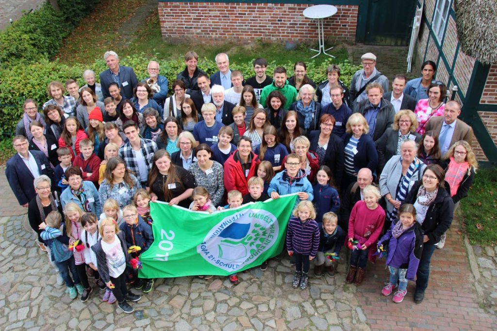 Im Rahmen einer Auszeichnungsveranstaltung im Freilichtmuseum am Kiekenberg in Rosengarten wurde unserer Schule am 27.09.2017 zum wiederholten Mal der Titel "Umweltschule in Europa / Agenda 21-Schule" verliehen. Ausgezeichnet werden Schulen, die besondere Projekte zum nachhaltigen Umgang mit der eigenen Lebenswelt durchführen.