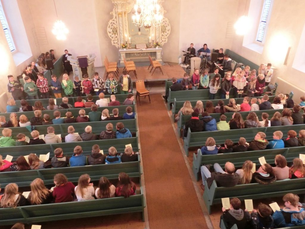 Unter dem Thema "Liebe deinen Nächsten" standen unsere diesjährigen Schulgottesdienste, die am 19.11.2014, dem Buß- und Bettag, in der Cosmae- und Damiani Kirche in Hambergen stattfanden. Der Andrang bei dieser für Schülerinnen und Schüler freiwilligen Veranstaltung war erneut so groß, dass insgesamt drei aufeinander folgende Gottesdienste stattfanden. Schüler hatten wieder zusammen mit ihren Lehrern viel Musik und ein szenisches Spiel vorbereitet, welche die Predigt von Pastor Beißner thematisch einrahmten. Unter der Leitung von Frank Nowak zeigten Schülerinnen und Schüler aus dem 8. Jahrgang, welche Folgen Ausgrenzung hat.