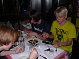 Einige sind deshalb mit dem Çascenseurí hochgefahren. Kaum zu glauben, wie groß Paris ist! Am Nachmittag können wir wegen einer Überschwemmung nicht in die Catacombes und besuchen stattdessen das große Kaufhaus Lafayette (Wahnsinnspreise!!!!) und später das Studentenviertel Quartier Latin. Am Mittwoch vergnügen wir uns in den Tuileries, dem königlichen Park am Louvre und bestaunen die große Glaspyramide. Bei Sonnenschein geht´s weiter auf die Ile de la Cité zur Kathedrale Notre Dame. Einige nehmen die Mühe auf sich, die Türme zu erklimmen und haben eine phantastische Aussicht über die Altstadt. Am Abend dann essen wir ganz à la francaise im alten Restaurant Chez Chartier.Einige bestellen sich Schnecken und finden sie sogar schmackhaft!