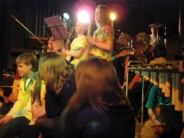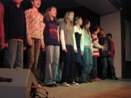 Los ging es mit der Klasse 5.1, die gekonnt Sambarhythmen und eine instrumentale Vivaldieinlage zum besten gaben. Die Klasse 5.6 hatte für das Publikum den aktuellen Titel "Geile Zeit" von Juli vorbereitet. Anschlieflend war die Klasse 6.3 an der Reihe. Sie präsentierte eine Aufbereitung der Verbrechersaga "Meckie Messer" und Heinrich Heines Ballade Belsazar in einer Rapversion. Schülerinnen des Jahrgangs 7 zeigten Ergebnisse ihrer Beschäftigung mit Gewaltprävention in Form einer gespielten Szene und eines Tanzes.