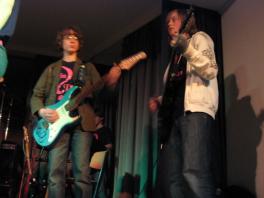 Jetzt kam die erste Schulband an die Reihe. Die Gruppe "Kein Plan" überzeugte durch einen gelungenen Sound und routiniertes Auftreten. Aus dem Jahrgang 9 demonstrierten Schülerinnen und Schüler den Umgang mit dem Musikprogramm "Magix Music Maker". Der selbst erstellte Pap "Emotionalster" war klasse! Auch aus dem Jahrgang 9 kam eine gelungene Reggaeeinlage, die im Rahmen der Unterrichtseinheit auflereuropäische Musik entstanden war. Die Band "Breezy", ebenfalls 9. Jahrgang, überzeugte mit mehreren Stücken. Aus dem 10. Jahrgang hatten Schülerinnen und Schüler den Titel "Break away" vorbereitet. Den Abschluss bildete die Band "No Name".