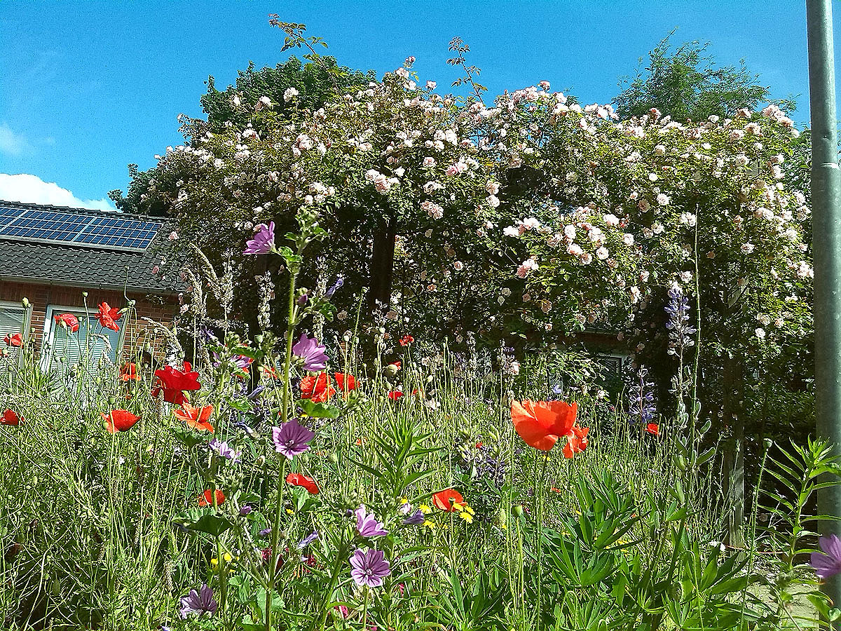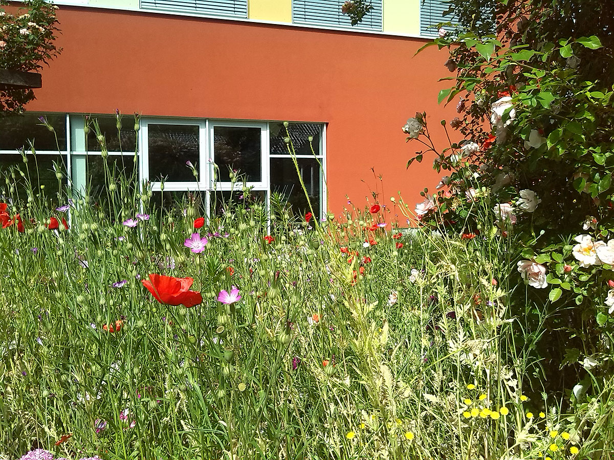In üppiger Blütenpracht zeigt sich derzeit das grüne Klassenzimmer rund um den Schulteich unserer Schule. Angelegt wurden die naturnahen Arbeitsplätze in Zusammenarbeit mit unserem langjährigen Kooperationspartner, dem Naturschutzbund (NABU). Die Pflege übernehmen die jeweiligen Wahlpflichtkurse Biologie von Herrn Köhring. Allen, die dieses Juwel mitten auf dem Schulgelände möglich machen, sei ein großes Dankeschön ausgesprochen.