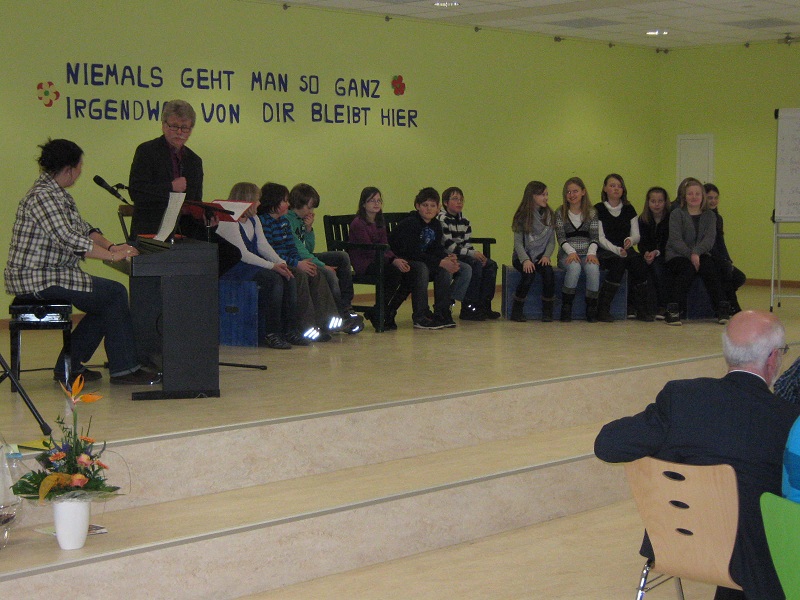 Am 13.02.2012 wurde unser langjähriger didaktischer Leiter Walter Mülich mit einem Festakt in den Ruhestand verabschiedet. Er begleitete den Aufbau der KGS fast von Anfang an und nahm maßgeblich Einfluss auf unser integratives Gesamtkonzept, auf das unsere Schule stolz ist und welches ihr einen besonderen Stellenwert unter den Kooperativen Gesamtschulen des Umlands verleiht. Extra zur Verabschiedung angereist waren die Landtagsabgeordnete Daniela Behrens und Dezernentin Marianne Assenheimer. Nach diversen Reden, bei denen auch Samtgemeindebürgermeister Bernd Lütjen, unsere Schulleiterin Ellin Nickelsen und Vertreter der Jahrgangs- und Fachbereichsleiter sowie des Personalrats Rückblickendes und Besinnliches erzählten, wurde die Feier von einem Auftritt der Musikklasse unter Gesche Ahlgrim eingerahmt. Der Kollege Alfred Robers hatte hierzu wieder einen Liedtext geschrieben. Den Ausklang der Feierlichkeit bildete das gemeinsame Beisammensein von aktiven und ehemaligen Kolleginnen und Kollegen bei Kaffee und Kuchen. Lieber Walter Mülich, vielen Dank für dein langjähriges Engagement an unserer Schule!