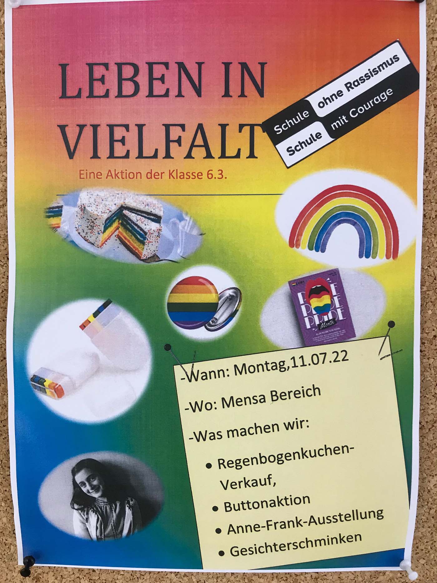 Aktionstag „Leben in Vielfalt“ Im Zusammenhang mit dem jährlichen Anne-Frank-Tag hat sich die Klasse 6.3 für die Durchführung eines Aktionstages …