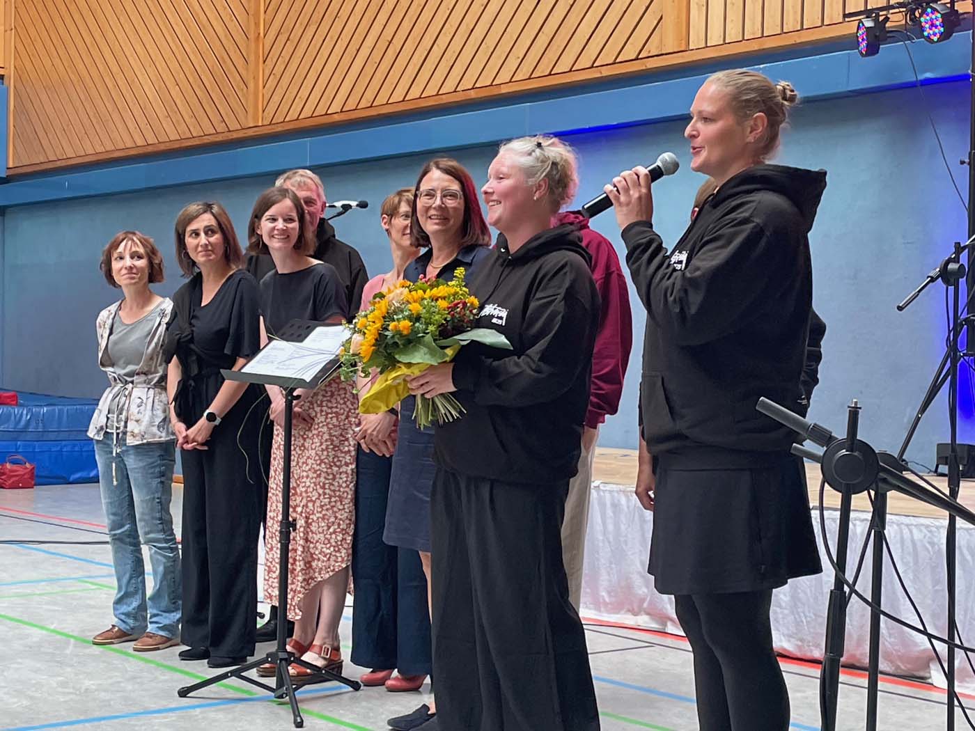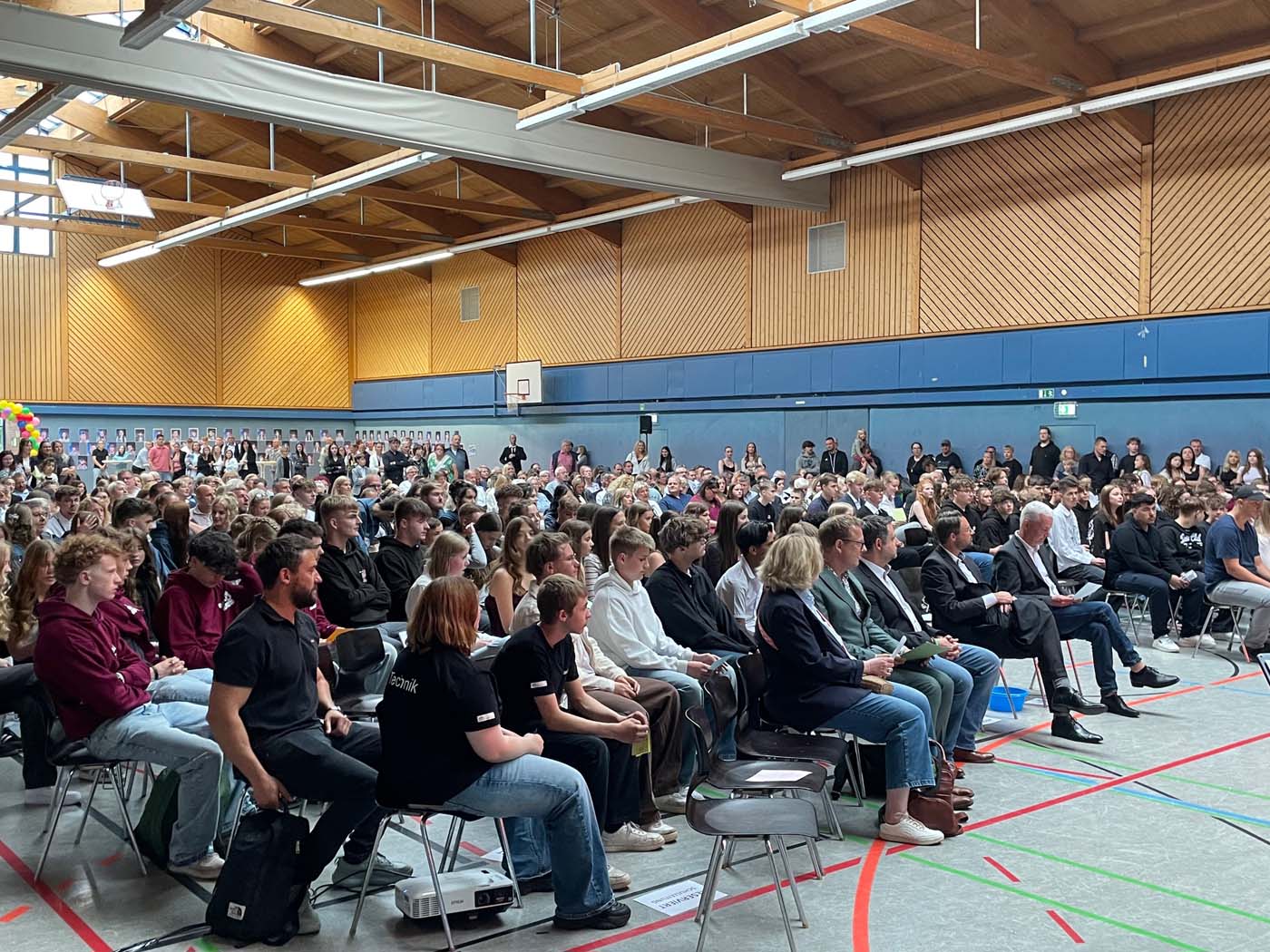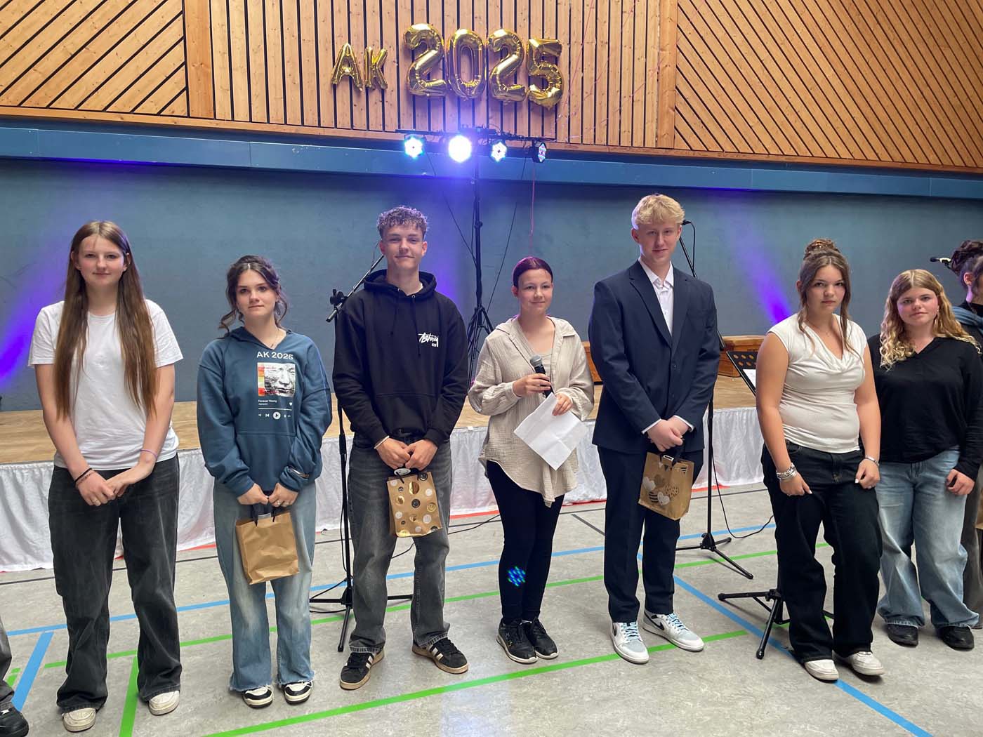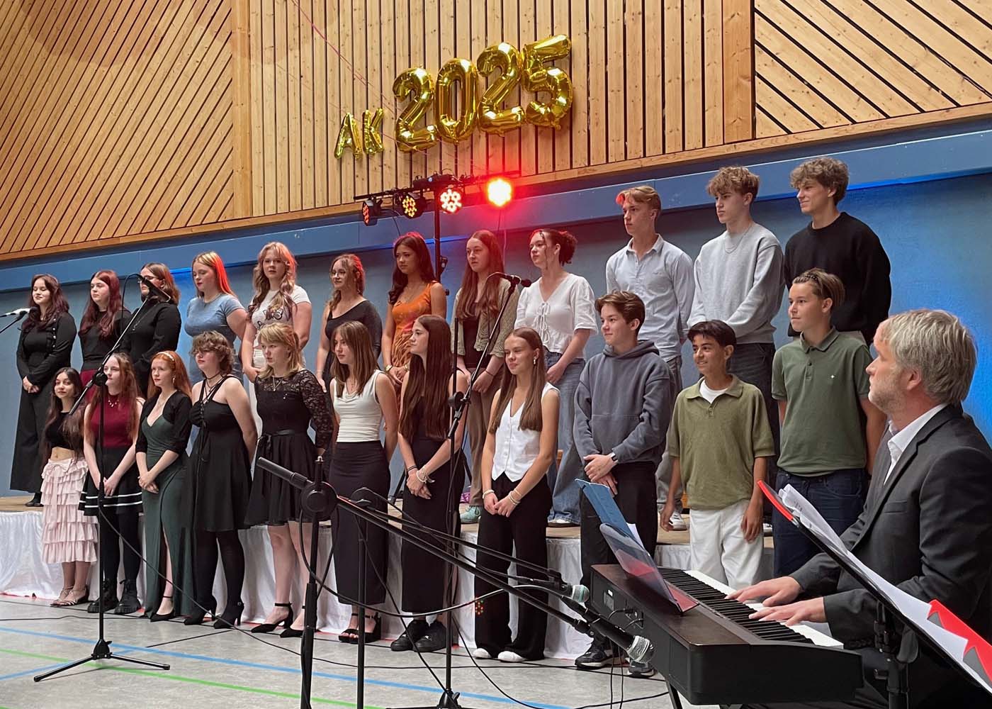 Rund 120 Schüler*innen der Jahrgänge 9 und 10 wurden im Rahmen der Abschlussfeier am 27.06.2025 verabschiedet. Während die zahlreichen musikalischen Beiträge fröhliche und nachdenkliche Töne erklingen ließen, betonten die Redebeiträge die vielen Chancen und Möglichkeiten, die den Absolvent*innen nun offen stehen. Bilanz zogen Vertreter*innen der einzelnen 10.Klassen und ließen die Jahre an der KGS Revue passieren. Ihre Gedanken und Wünsche zum Abschlussjahrgang 2025 formulierten die Klassenlehrkräfte in Form eines bewegenden Films. Mögen die vielen bunten Ballons, die die Feier prägten, allen die vielen verschiedenen Facetten und Farben des Lebens und der eigenen Möglchkeiten aufzeigen. Herzlichen Glückwunsch allen Absolvent*innen für eure tolle Leistung und schon ein herzliches Willkommen zum Ehemaligentreffen im Mai 2026.