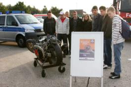 Unter dem Motto "Junge Fahrer" veranstaltete die Logistikschule der Bundeswehr in Garlstedt am 21.09.2007 unter Mitwirkung verschiedener Hilfsdienste einen Verkehrssicherheitstag, der Jugendliche durch praktische Anschauung an das Thema Auto und Verkehr heranführen sollte. Eingeladen waren Schülerinnen und Schüler der umliegenden Schulen der Kreisstadt Osterholz-Scharmbeck. Aus unserer KGS waren die Schülerinnen und Schüler des 10. Jahrgangs dabei. An diversen Stationen wurden verkehrstypische Situationen durchgespielt, z.B. das Ausscheren eines landwirtschaftlichen Fahrzeugs oder das Schlingern eines bremsenden Pkws auf regennasser Fahrbahn.