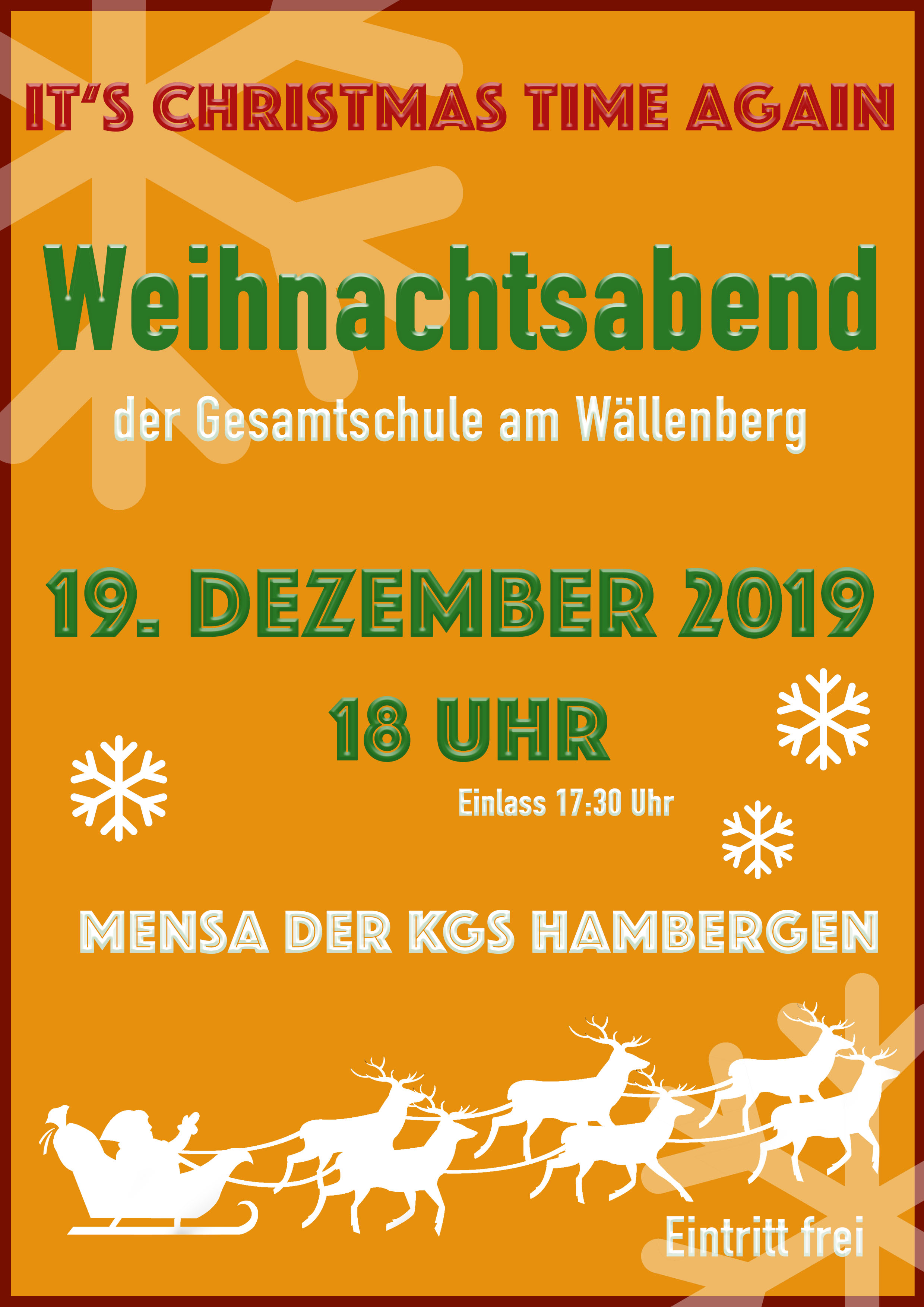 Am 19. Dezember findet der diesjährige Weihnachtsabend an der KGS statt.