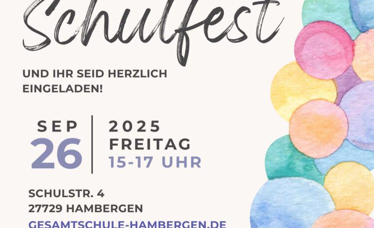 Zu unserem Schulfest am Freitag, 26.09.2025, laden wir alle Eltern und Verwandten, Kooperationspartner, Freundinnen und Freunde unserer Schule, die Nachbarschaft …
