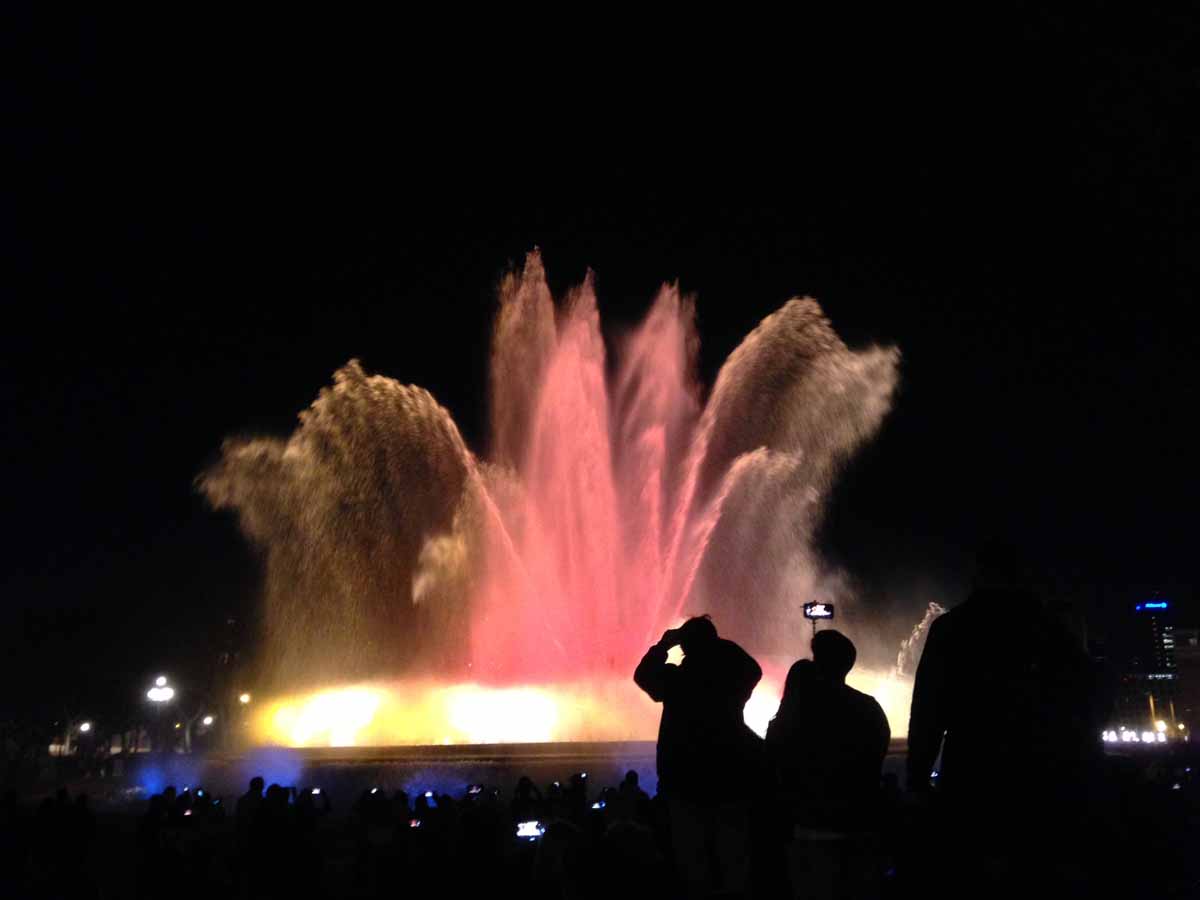 Die Wasserspiele abends am „Font Màgica“ (dem magischen Brunnen) waren sehr groß und beeindruckend. Wenn man dicht daran stand und der Wind aus der richtigen Richtung kam, wurde man sogar nass. Etwas nervig waren allerdings die vielen fliegenden Händler, die einem alles Mögliche verkaufen wollten…