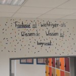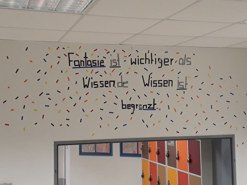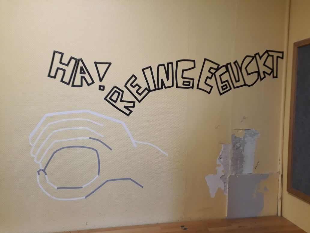 In diesem Kontext entstanden so unterschiedliche Kunstwerke, wie die "tape art", die als Grundlage für weiterführende Werke in der Zusammenführung von theoretischem Hintergrundwissen und Praxis, in einer Art "öffentlichem Plädoyer", fungiert. Die nachfolgenden Werke der SchülerInnen werden auch - ganz im Sinne von Otto - weiter geführt; denn schließlich wir "[d]ie Welt [...] durch Bild *UND* Sprache in Erfahrung gebracht". Auch der WPK hatte Freude dabei, die für uns sichtbare Welt abzubilden, auch, wenn wahrscheinlich mittlerweile diese von anderen SchülerInnen dieser Schule "abgeknibbelt" wurde....