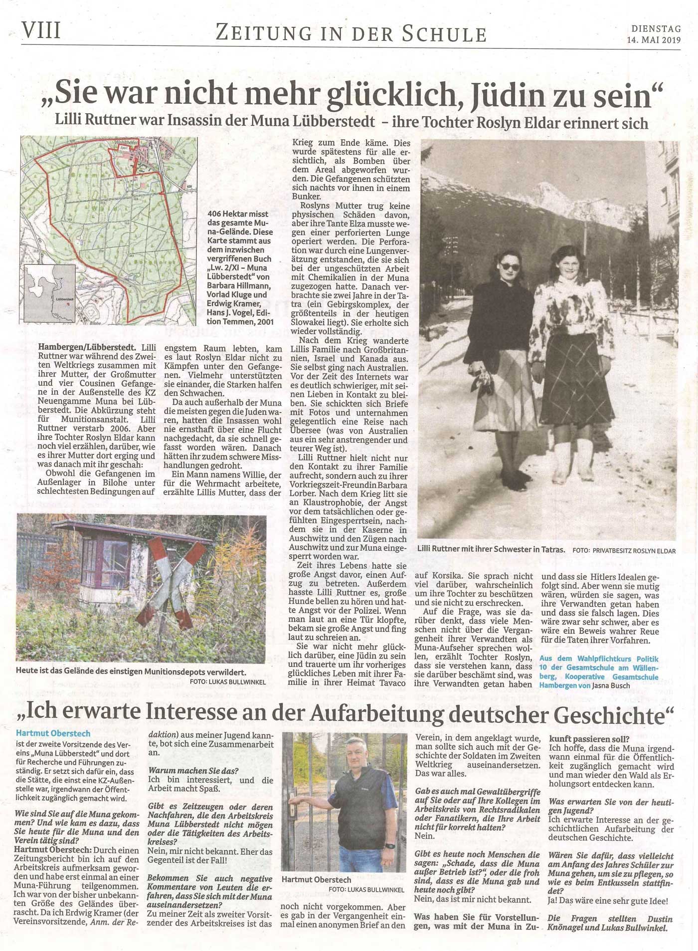 Der WPK Politik des 10. Jahrgangs hat sich im Rahmen des ZiSch-Projekts intensiv mit der Geschichte der „Muna“ auseinandergesetzt und die bis heute sichtbaren Folgen in den Fokus genommen. Neben der Zeitungsseite im Weser-Kurier haben die SchülerInnen die Dokumentation ihrer Arbeit auch als Beitrag zum Geschichtswettbewerb des Bundespräsidenten eingereicht. Mehr zur „Muna“ Lübberstedt finden Sie unter www.muna-luebberstedt.de. Dort ist auch der Wettbewerbsbeitrag zu lesen. Wie wichtig es ist, sich der eigenen Vergangenheit zu stellen und der Opfer des nationalsozialistischen Terrors zu gedenken, sollte uns allen bewusst sein. Vielen Dank an die SchülerInnen und Herrn Bertke als verantwortliche Lehrkraft.