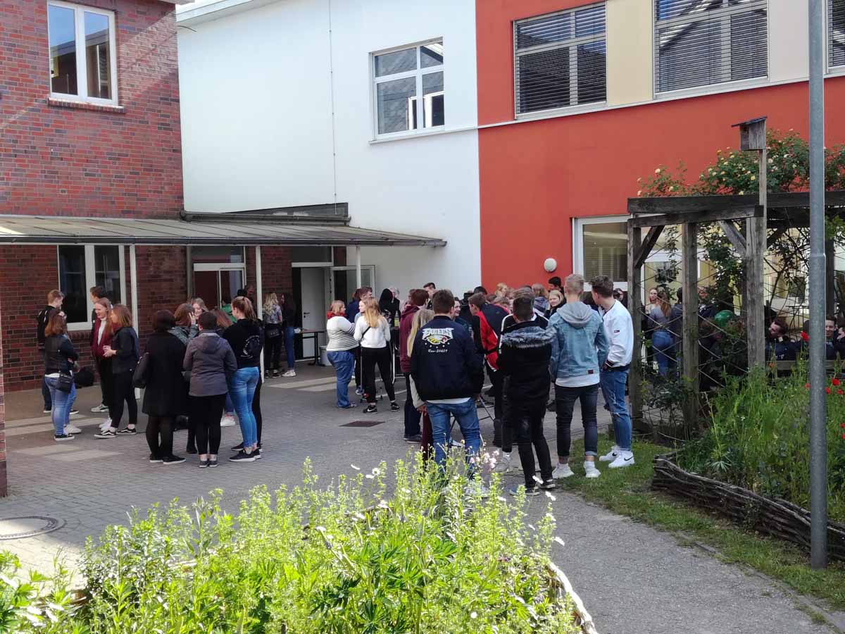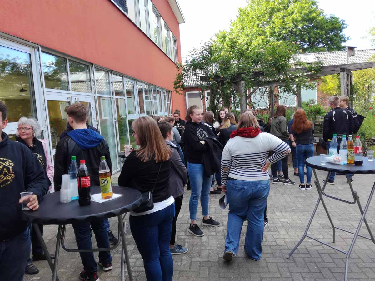 Wieder mal war es soweit, die SchülerInnen des letzten Abschlussjahrgangs folgten der Einladung ihrer „alten“ Schule und versammelten sich zahlreich zum Ehemaligentreffen bei Grillwurst und Gemüsespießen. Rund 120 ehemalige SchülerInnen kamen und berichteten von ihrer Ausbildung als Bauzeichner, Kälte- und Klimatechniker oder Erzieherin, tauschten sich aus über ihre Erfahrungen an der der Sekundarstufe II, ihren Job in einem Schnellrestaurant oder dem anstehenden Auslandsjahr in den USA. Trotz der Verschiedenheit der eingeschlagenen Wege, eine Gemeinsamkeit gilt für alle: die Verbundenheit mit ihrer KGS Hambergen und viele, zumeist gute, Erfahrungen während der Schulzeit. Seid auch in Zukunft herzlich willkommen!