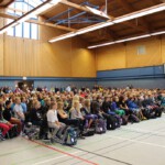Für über 160 Schülerinnen und Schüler war es der erste Tag an der Gesamtschule am Wällenberg: Am 12.09.2014 fand in der Mehrzweckhalle der Gemeinde Hambergen die offizielle Einschulung der neuen Fünftklässler statt. Wieder wurden dazu sechs neue Klassen gebildet. Die Klasse 5.1 ist dabei eine Musik-Schwerpunktklasse. Eine weitere Klasse hat ein Integrationskonzept. Der Zustrom zur KGS ist dabei ungebrochen. Erneut besuchen uns viele Schülerinnen und Schüler aus benachbarten Gemeinden und Landkreisen. Die hohe Zahl der Anmeldungen zeigt, dass unser pädagogisches und auf Integration ausgerichtetes Konzept weiterhin eine hohe Strahlkraft hat. Begrüßt wurden die Neuankömmlinge durch unsere Schulleiterin Frau Nickelsen und durch die Lehrerinnen und Lehrer, die die sechs neuen 5-ten Klassen als Klassenlehrerinnen bzw. Klassenlehrer begleiten werden. Musikalisch ausgestaltet wurde die Veranstaltung von der Musik-Schwerpunktklasse 6 unter Leitung von Frau Rolke.
