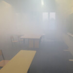 Sirenenalarm in Hambergen, Feuerwehr, Polizei und Rettungswagen vor der KGS, dichter Rauch quillt aus dem Raum O15, zwei KollegInnen stehen am offenen Fenster und rufen laut um Hilfe. Schon ist der Einsatzwagen der Feuerwehr auf dem Gelände. Ein Atemschutztrupp bahnt sich seinen Weg durch das Gebäude. Die Kameraden stellen von außen die Leiter an, über die dann die Eingeschlossenen sicher gerettet werden können.