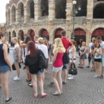 Für die Klassen 10.2 und 10.5 startete die Abschlussfahrt am späten Nachmittag des 15.06.2014. Mit dem Bus ging es 20 Stunden Richtung Süden. Ziel war der Gardasee, den wir am Montagmittag bei strahlendem Sonnenschein erreichten. Unsere Unterkünfte bestanden aus Hütten, die auf einem Campingplatz mit angrenzendem Hotel standen. Von hier aus hatten wir einen direkten Zugang zum See. In den nächsten Tagen unternahmen wir Ausflüge nach Verona und Venedig. Am Gardasee besuchten wir zudem Sirmione und machten eine Schnellbootfahrt rund um die Halbinsel. Alles in allem eine gelungene Fahrt mit tollem Wetter und viel zu sehen! Auf der Busfahrt nach Italien Fußball-WM vor einer Hütte mit TV Am See direkt vor unserem Platz Vor der Arena in Verona Bootsfahrt um Sirmione Full Speed auf dem See Im Gedränge auf der Rialto-Brücke Gondeln in Venedig Auf dem Canale Grande Auf unserem Campingplatz