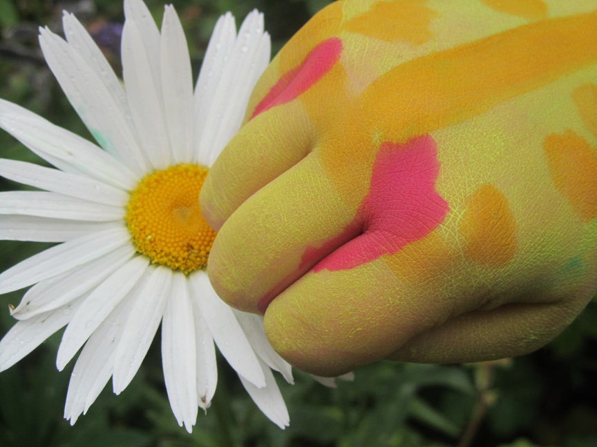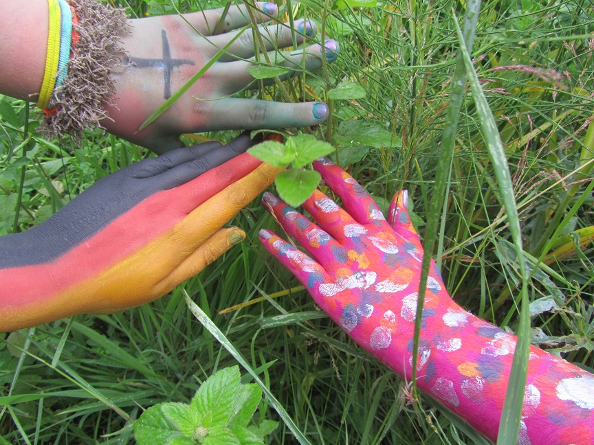 Handbemalungen als kleines Zwischenthema im Kunstunterricht der Klasse 5.5. Die frei mit Farbe dekorierten Hände und Arme wirken besonders gut vor Naturkulisse. Und davon haben wir an der KGS eine Menge. Die Fotos entstanden kurz vor den Sommerferien an unserem Schulteich und auf der angrenzenden Wiesenblumenfläche, die von Schülerinnen und Schülern in Zusammenarbeit mit dem NABU und angelegt wurde und liebevoll gepflegt wird.