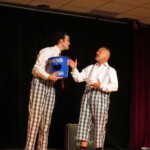 Mit ihrem Sprachwitz rund um Missverständnisse in der fremdsprachigen Kommunikation, Slapsticks und mitreißender Artistik begeisterten Christof Heiner und der Engländer David Spence die jungen Gesamtschüler. „Die beiden waren echt richtig lustig. Das hat Spaß gemacht.“ fasst ein Fünftklässler den Vormittag zusammen.