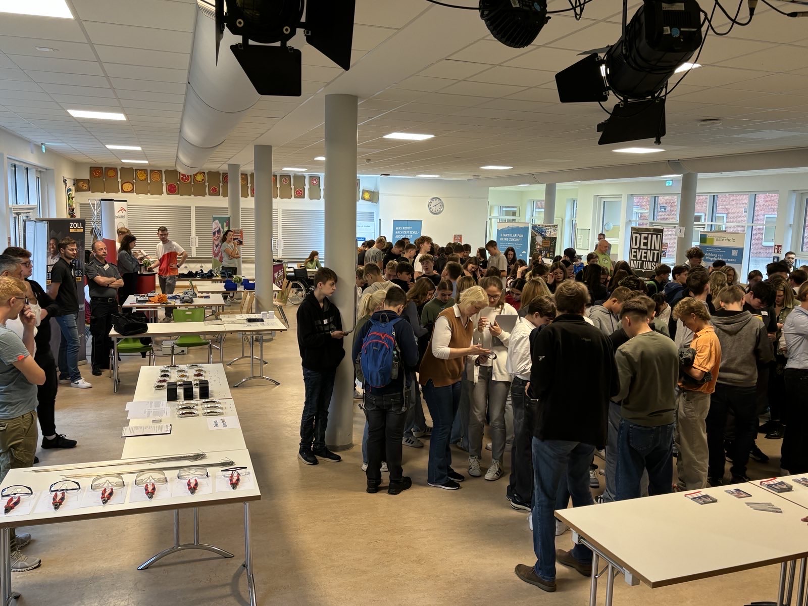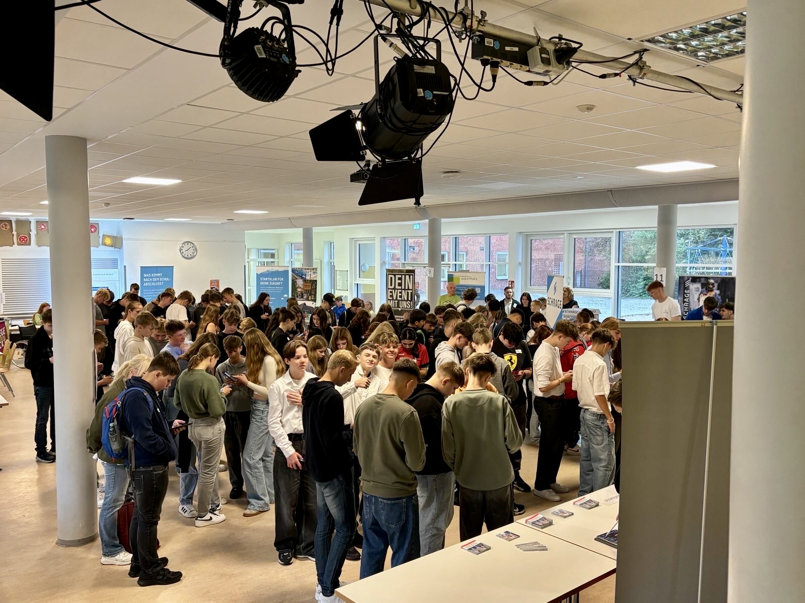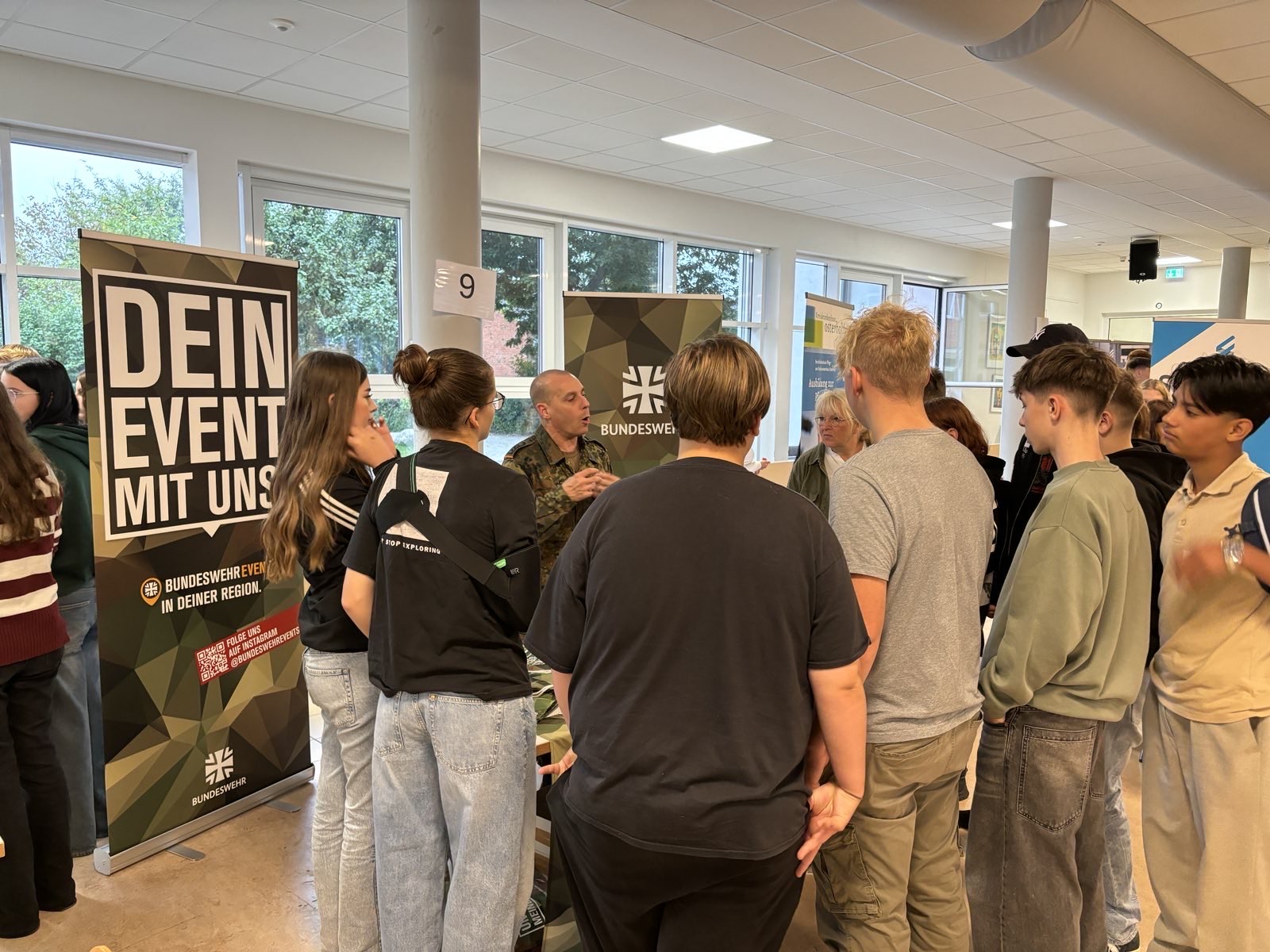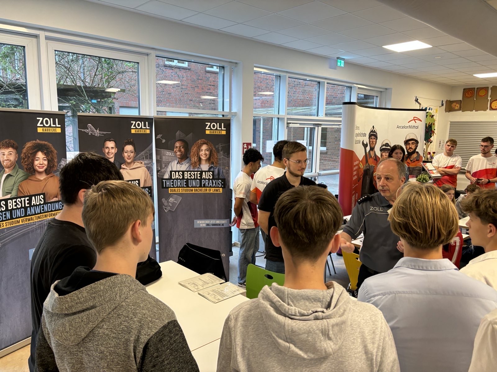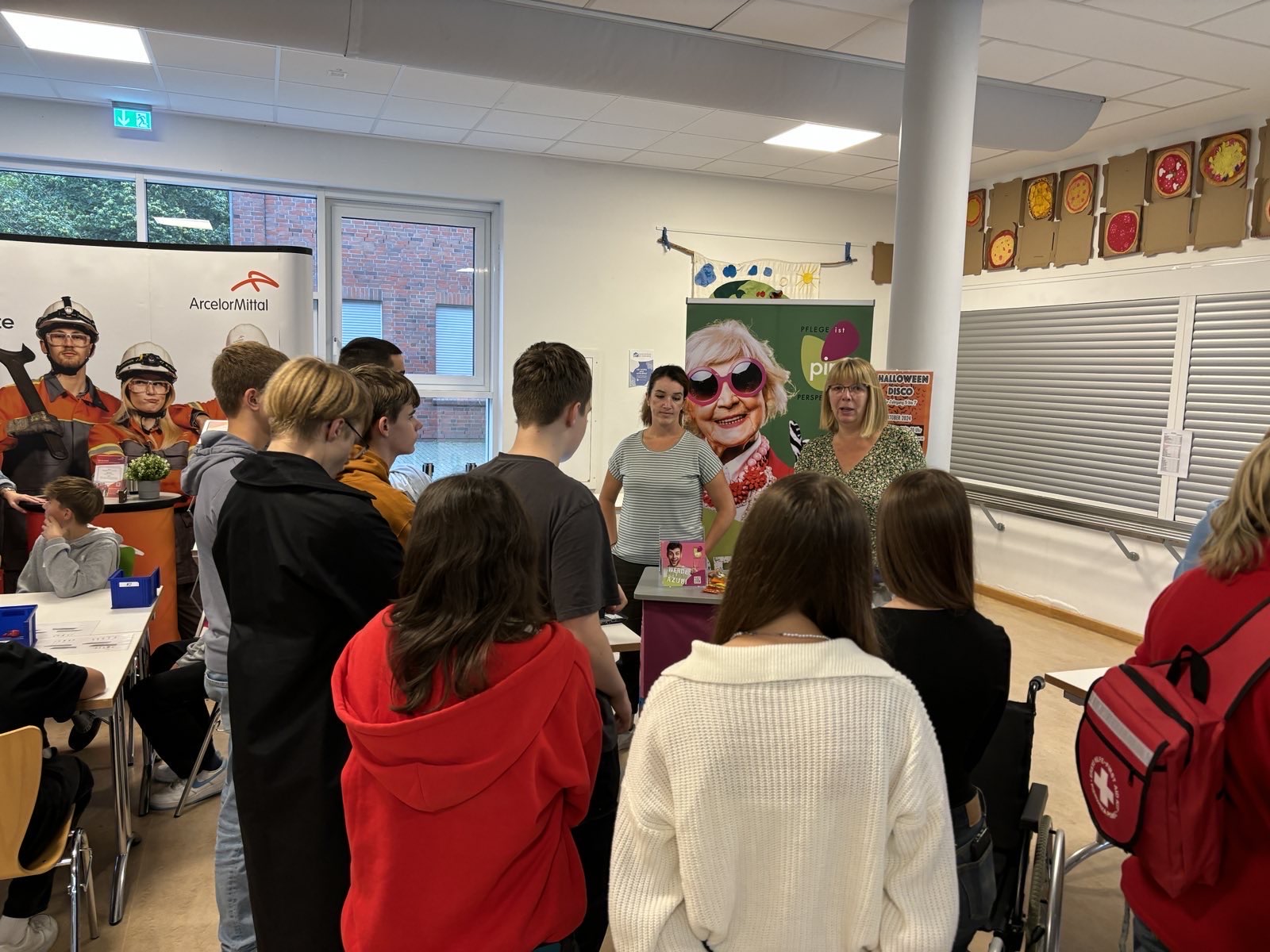 Insgesamt ist es eine großartige „Win-Win-Situation“: Die Unternehmen suchen Nachwuchs und können in der Messe direkt mit potentiellen Bewerber*innen sprechen. So konnte allein heute Vormittag die Vergabe von 20 Praktikumsplätzen unter Dach und Fach gebracht werden. Die Betriebe aus der Region, u.a. die Sparkasse Rotenburg Osterholz, die Bundeswehr, die Samtgemeinde Hambergen, der Zoll, die Fa. Schrage, die Fa. ArcelorMittal, das Kreiskrankenhaus, die Stadtwerke Osterholz, oder die Fa. Ronnefeldt Tee, um nur einige zu nennen, kommen gerne im nächsten Jahr wieder. Das haben sie bereits begeistert angekündigt.