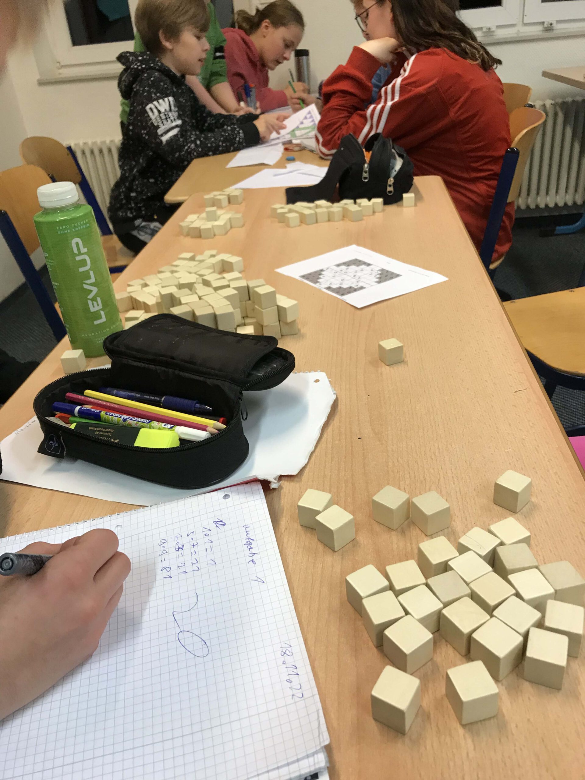 Der Duft von heißem Kaffee und Tee weht durch die Flure, das Knistern von Chips- und Gummibärchentüten dringt aus einzelnen Klassenräumen. Hochkonzentrierte junge Menschen in gemütlichen Klamotten kritzeln Zahlen an die Tafel, andere setzen kleine Holzwürfel in den verschiedensten Kombinationen zusammen. Plötzlich ein Ruf aus aus dem Computer-Raum: „Ich hab’s! Das ist die Lösung!“