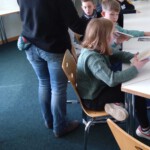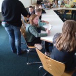 Mit dem diesjährigen Exemplar: „Mission Roboter“ von Anke Girod soll ihre Freude am Lesen geweckt oder unterstützt werden. Den Erfolg verdankt die Aktion vor allem den zahlreichen Buchhändler/-innen, die das Welttagsbuch bestellen, um es den Schüler/-innen zu schenken. So war dieses Jahr Frau Weißenborn von der Buchhandlung „Die Schatulle“ aus Osterholz-Scharmbeck zu Gast. Sie schenkte aber nicht nur, sondern las gleich auch noch das erste Kapitel den anwesenden Klassen vor.