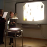 Auf den Spuren von Goethe, Fontane und Kästner und vielen anderen präsentierten am vorletzten Tag vor den Weihnachtsferien die Schüler/-innen dann ihre Ergebnisse. Schaurig und schön zeigten sich die Balladen, die die Schülerinnen und Schüler bearbeitet hatten: Drei Monitore in der schuleigenen Mediathek flimmerten mit Kurzfilmen eineinhalb Stunden lang, im Musikraum konnte man die akustischen Ergebnisse erleben, der Kunstraum war mit Plakaten und Objekten belegt.