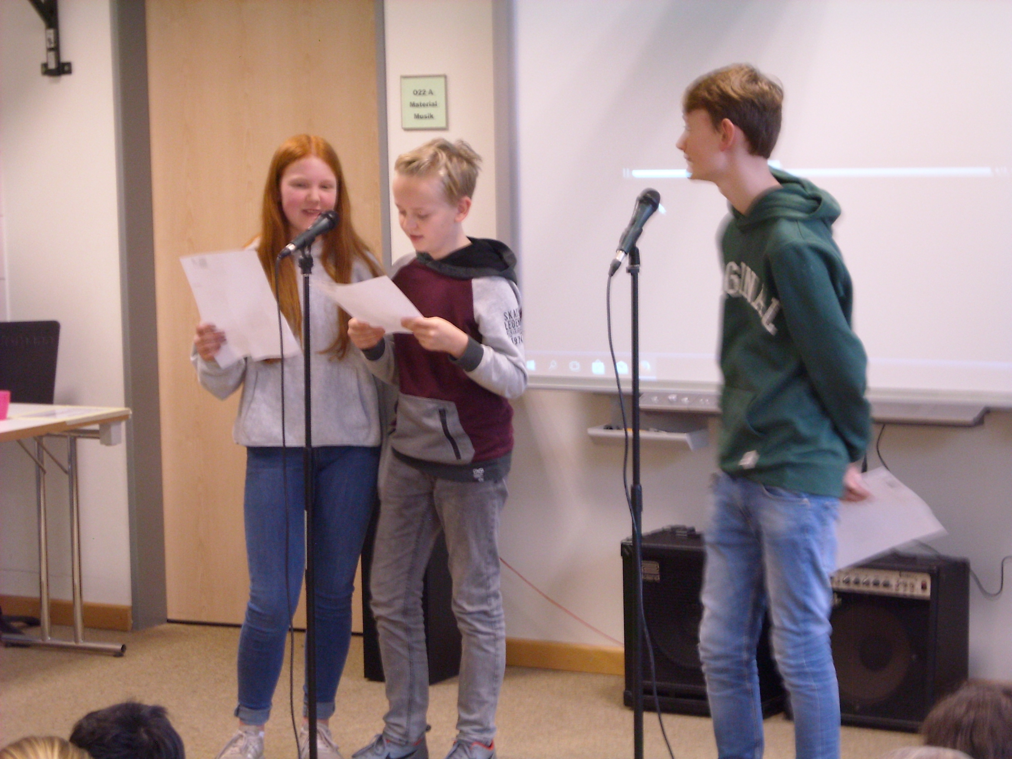 Schüler/-innen der KGS Hambergen präsentieren Ergebnisse ihres Balladenprojekts.