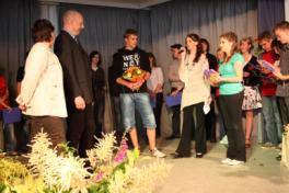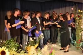 Auch in diesem Jahr - unausweichlich der Tag, an dem uns die 10ten Jahrgänge mit ihren frisch erworbenen Schulabschlüssen verlassen, um zur Oberstufe oder anderen weiterführenden Schulformen zu wechseln oder um eine Lehre zu beginnen. In der festlich geschmückten Pausenhalle gespannte Eltern, Schülerinnen und Schüler, unsere Schulleiterin, der Samtgemeindebürgermeister, der Pastor und viele Abschied nehmende Lehrerinnen und Lehrer. Nachdem die Abgängern nacheinander ihre Zeugnisse mit einer roten Rose erhalten hatten, revanchierten sich die Jugendlichen mit einem Geschenk für ihre nun ehemaligen Klassenlehrer. Wie immer bewegende Momente...