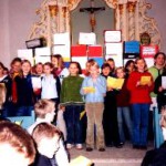 Gemalte Plakate zeigen die verschiedenen Handlungsmöglichkeiten und regen zum Nachdenken an. Eingerahmt wird der Gottesdienst von musikalischen Beiträgen. Der Schulchor singt die Lieder „Er hält die Welt in seiner Hand“, „I’m gonna sing“ und „Give me that old time religion“. Bei den bekannten Refrains können aber fast alle Anwesenden mit einstimmen. Instrumentale Unterstützung leisten die Lehrerinnen und Lehrer aus dem Musikfachbereich.