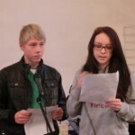 Die Musikklassen 5.1, 6.1, 7.1 und 8.1 hatten zudem Lieder für den Gottesdienst vorbereitet. Wieder dabei der Song "Wir wollen aufstehen", den mittlerweile viele Schüler schon ohne Texthilfe mitsingen können, da sie ihn aus den vorangegangenen Jahren kennen. Weiter zu hören waren Amazing Grace in einer dreistimmigen Version der 8ten Klasse und die Lieder "Streets of London" sowie "Herr, deine Liebe". Die Lehrerband unterstützte den Gottesdienst wie fast jedes Jahr musikalisch.