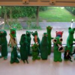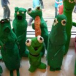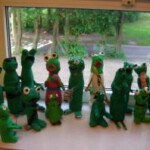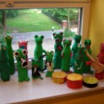 Das Froschorchester spielt auf. Ein Projekt der Klasse 6.6 mit ihrer Kunstlehrerin Insa Meyerholz. Entstanden sind die verschiedensten Musikerinnen und Musiker aus Pappmaché. Grundlage bildete eine Plastikflasche, die zunächst beklebt und später bemalt wurde.