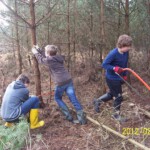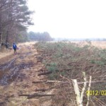 Auch in diesem Jahr machte uns das Wetter zu schaffen. Unser erster Termin Ende Januar fiel im wahrsten Sinne des Wortes "ins Wasser". Aber dann: Am 22. und 23. Februar 2012 war es endlich soweit. Mit Sägen und Astscheren "bewaffnet" zogen 174 Siebtklässler ins Heilsmoor. Ihr Ziel: Alle Bäume zu entfernen, die nicht in ein Moor-Biotop gehören, das sind vor allem Birken und Kiefern, die sich auf Grund des niedrigen Wasserstandes dort ansiedeln konnten. Werden sie nicht entfernt, dann entziehen sie dem Moor während der Wachstumsphase noch mehr Wasser. Das Moor würde langsam austrocknen. Bei milden Temperaturen packten die Mädchen und Jungen mit ihren Klassenlehrern und weiteren Kollegen kräftig an: Unter Anleitung von 14 erfahrenen NABU-Mitgliedern wurden in ausgewählten Moorbereichen Äste abgeschnitten, kleine und grofle Bäume gefällt und zum Rand des Feuchtgebietes getragen. Auch unsere Pensionäre waren mit dabei: Hr. Hesemann, Hr. Steinwede, Hr. Lüken und neu ñ Hr. Mülich. Wie im bereits im letzten Jahr starteten 2 Klassen vom Lauwiesenweg aus (Nordseite des Heilsmoores); während 4 Klassen in bewährter Form vom Wasserwerk Wallhöfen aus losgingen.