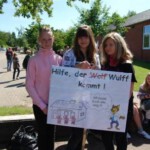 “ Zu dieser Gruppe gehören dann auch Saskia Christgau, Ricarda Müller und Franziska Thölken. Die drei Freundinnen gehen in drei verschiedenen achte Klassen, belegen aber gemeinsame Gymnasialkurse. „Wir hoffen, dass wir das Turboabi nicht machen müssen.“ Auf ihrem Protestschild bringen sie ihren Unmut mit der Geschichte von den drei kleinen Schweinchen und dem bösen Wolf zum Ausdruck, ganz klar an den niedersächsischen Ministerpräsidenten Christian Wulff gerichtet. Lütjen nutzte gleichzeitig die Gelegenheit, um auf einen anderen Streitpunkt hinzuweisen. Ein Viertel der Schüler kommt aus dem Landkreis Cuxhaven. Die Bitte an den Landkreis, sich an den Schulkosten zu beteiligen, hatte dieser ohne Antwort abgelehnt.