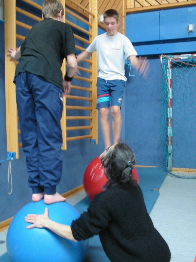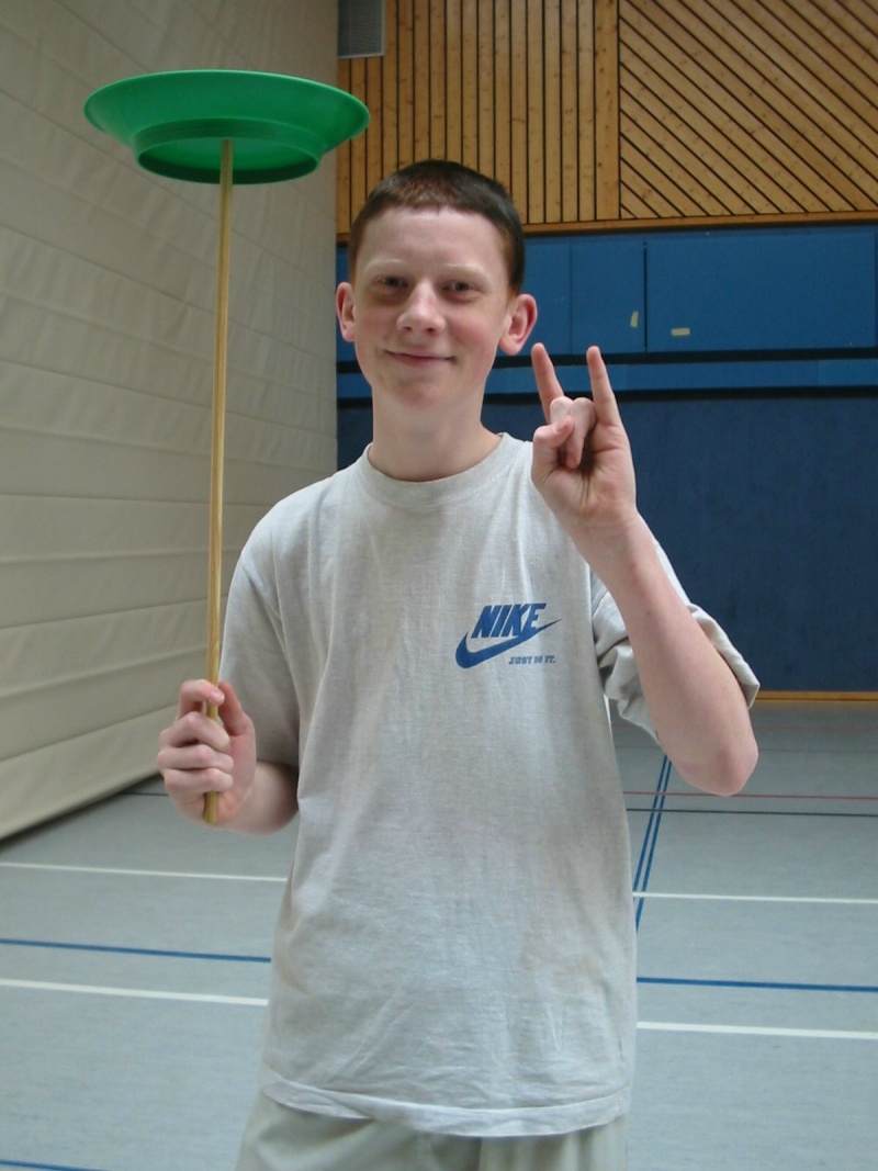 In den Zirkusgruppen, die vom Zirkuspädagogischen Zentrum aus Hannover zu uns gekommen war, ging es um Akrobatik und Jonglage. Auflerdem war eine Seillaufbahn aufgebaut, an der die Jugendlichen ihren Gleichgewichtssinn schulen konnten. Ein Zauberer rundete das Zirkusprogramm ab. Er plauderte vor einer Schülergruppe aus dem so genannten „Nähkästchen“ und probierte mit ihnen diverse Tricks aus.