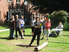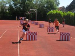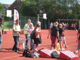 Wieder hatten wir tolles Wetter an unserem Schulsportfest, das traditionell vor den großen Sommerferien stattfindet. Diesmal ging es um einen alternativen Leichtathletikmehrkampf. In Klassenteams konnten die Schülerinnen und Schüler an verschiedenen Stationen ihr Können unter Beweis stellen. Sie sammelten Teampunkte beim Baumstammwurf, beim Hindernislauf oder beim Hüpfen über Hindernisse.