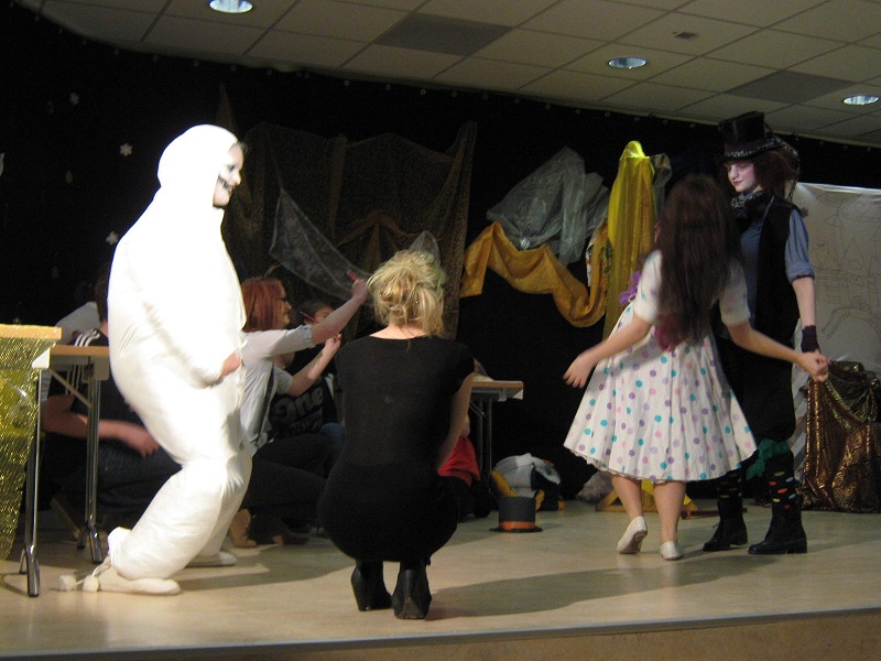 Am Tag der Zeugnisausgabe gab es Theater für den 9. und 10. Jahrgang. Zwei DSP-Kurse stellten ihre Produktionen vor. Schüler des 9. Jahrgangs gaben Sketche von Loriot, u. a. das Frühstücksei, zum Besten. Schüler aus dem 10. Jahrgang nahmen uns mit auf die Reise von "Alice im Winterwunderland". Die Schüler gaben dem Stück ihren eigene Note und so begegnete Alice nicht nur dem Hutmacher und seinen Begleitern, sondern auch dem Weihnachtsmann und dem Schneemann und zu guter Letzt besiegte sie die böse Königin. Eine gelungene Aufführung. Dank an die Schauspieler für ihr herrliches Spiel, die farbenprächtigen Kostüme und ihren Einsatz.