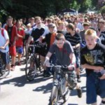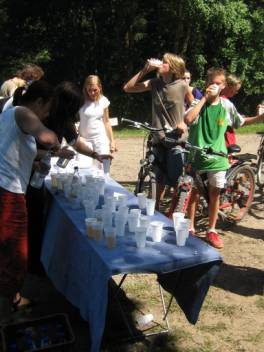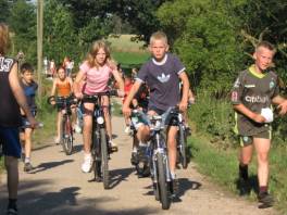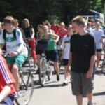 Das diesjährige Sportfest stand unter dem Motto „Duathlon“. Zu bewältigen war dabei eine Strecke laufend und per Fahrrad. Die jahrgangsweise gestarteten Schülerinnen und Schüler hatten dazu 2er-Teams gebildet. jede Gruppe durfte ein Fahrrad benutzen. Es wurde also abwechselnd gelaufen und geradelt. Der Teamgedanke stand dabei wieder im Vordergrund. Gewertet wurden nur gemeinsam absolvierte Runden. Zusätzliche Motivation war das Versprechen vieler Eltern und Verwandten, eine Geldspende für jede gelaufene Runde bereit zu stellen.