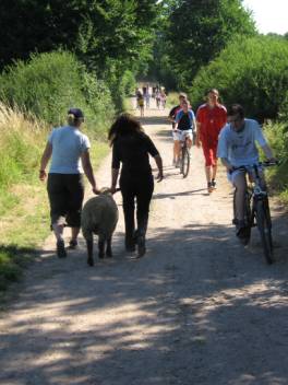 Diese geht in einen Schulfond oder wird, je nach Absprache, für wohltätige Zwecke gespendet. Vielen Dank! Wieder hatten wir tolles Wetter und besonders unsere zuletzt gestarteten Sportler bekamen die Sonne richtig zu spüren. Heiß begehrt deshalb die gesponserten Getränke, die uns von der AOK zur Verfügung gestellt wurden. Neben Lehrern, Eltern und Schülern verfolgte auch ein heimatloses Schaf angeregt den Wettkampf und ließ es sich nicht nehmen, einige Schülerinnen und Schüler auf ihrem Weg zu begleiten und diese durch sein plötzliches Auftauchen zu Höchstleistungen anzuspornen.