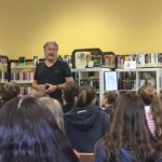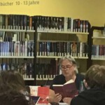 Olaf Büttner liest vor Neuntklässlern/-innen in der Gemeindebücherei.