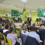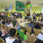 Die Schülerinnen und Schüler des 7. Jahrgangs hören genauso gebannt zu wie die zahlreichen Gäste: Lehrer Thomas Köhring berichtet über die Wichtigkeit des Erhalts unserer heimischen Moore. Eine Aufgabe vor Ort mit globaler Bedeutung. Die Moore sind Kohlendioxid-Speicher und sorgen damit für das Aufhalten des vom Menschen gemachten Klimawandels.
