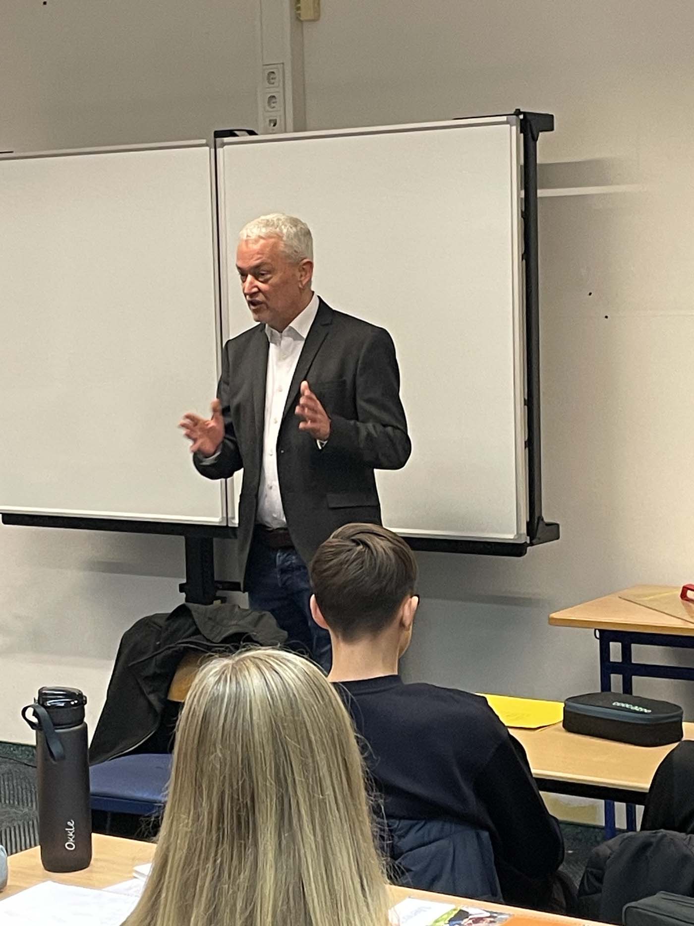 Passend zur Unterrichtseinheit „Politik im Nahraum“ stand der Samtgemeindebürgermeister Gerd Brauns der Klasse 8Gy1 Rede und Antwort. Er berichtete über seinen Werdegang, seine Aufgabenbereiche, seine Motivation und seine Erfahrungen mit den Menschen in der Samtgemeinde. So leitet er nicht nur die Ratssitzungen, sondern besucht auch Geburtstagskinder, ist für die öffentliche Ordnung verantwortlich und repräsentiert die Samtgemeinde bei Veranstaltungen aller Art. Besonders gefällt ihm der enge Kontakt zu den Menschen, auch wenn das Telefon mal nachts klingelt oder sonntags jemand vor der Tür steht und eine Frage hat. Hauptproblem aller Kommunen sind die Finanzen, weil viele Dinge gleichzeitg bearbeitet und finanziert werden müssen. Dazu gehören in der Samtgemeinde das Hambad, die Feuerwehrgebäude, vor allem aber auch die Sanierung unserer KGS.
