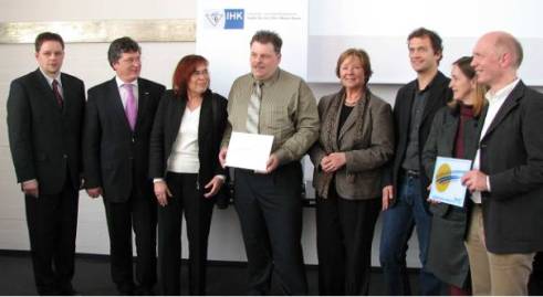Am 08.04.2008 wurde im Rahmen einer Feierstunde, zu der in den Räumen der IHK Stade eingeladen worden war, der Gesamtschule am Wällenberg die Zertifizierung im Rahmen des Projekts "ProBerufsOrientierung! Schule-Wirtschaft" für den Zeitraum 2008-2011 überreicht. Das Projekt verfolgt das Ziel, die Qualitätssicherung im Bereich Berufsorientierung an allgemein bildende Schulen zu verankern. Da Berufsorientierung eine der Säulen unseres Schulprogramms ist und es eine beeindruckende Liste von Maßnahmen gibt, die der Berufsvorbereitung unserer Schülerinnen und Schüler dienen, war es 2007 an der Zeit, sich der Zertifizierung zu stellen. Die KGS Hambergen wurde entsprechend dieses Jahr zum ersten Mal von einer dreiköpfigen Jury mit ihrer ausführlichen Bewerbung, dem so genannten Kursbuch, das von Ilona Heeren und Rainer Kampel zusammengestellt worden war, überprüft. Im Februar 2008 wurde das Audit durchgeführt, zu dem die Jury in die Schule kam und Kursbuch, aber auch die berufsorientierenden Maßnahmen vor Ort unter die Lupe nahm. Die Schule bestand diese Prüfung auf Anhieb und darf sich nun bis 2011 als zertifizierte Schule bezeichnen. Neben der Urkunde wurde uns ein Türschild überreicht, das nun den Eingangsbereich schmücken wird.