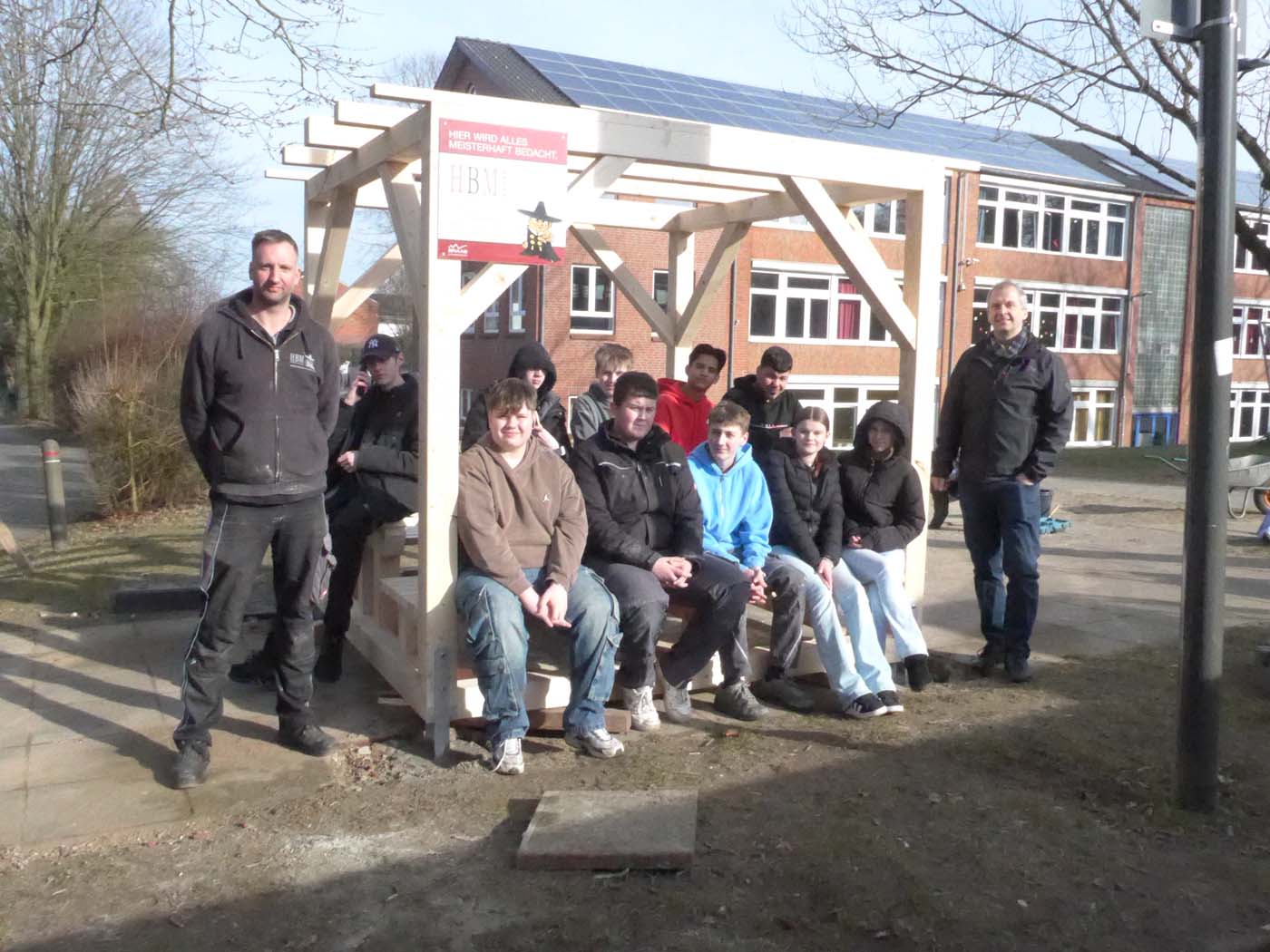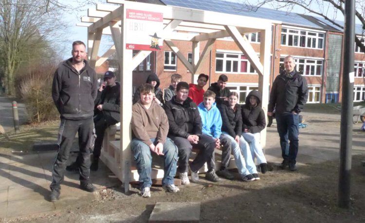Tatkräftige Unterstützung erhalten die Jugendlichen bei ihrem Projekt von dem Handwerksbetrieb Holzbau Murken aus Lübberstedt: „Es ist für uns eine absolute Selbstverständlichkeit, die KGS Hambergen bei solch einem tollen Projekt zu unterstützen. Wir bringen die Fachpraxis in die Schule und wir freuen uns, dass sich die Jugendlichen für das Handwerk begeistern“, sagt der Zimmerermeister Kai Murken. Der Techniklehrer Rainer Kampel-Stiller ergänzt: „Die Schülerinne und Schüler sind sehr engagiert und tatkräftig dabei. Es ist eine tolle Aktion, die den Schulalltag belebt. Die Zusammenarbeit mit Holzbau Murken war hervorragend. Und die Schüler konnten einen ersten Kontakt zum Handwerksbetrieb knüpfen für ein Praktikum oder eine zukünftige Ausbildung.“