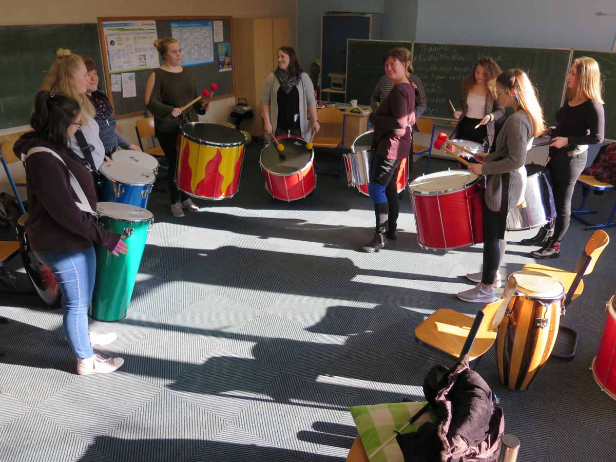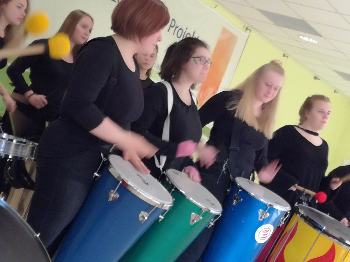Hieroglyphen, arabische Tänze, kunstvoll verzierte Gipsmasken, Schmuck aus Papier, Präsentationen zu Kinderarbeit in der Welt oder Produkte aus der Praxiswoche an der BBS in Osterholz-Scharmbeck - dazu Waffeln, Kaffeeduft, ein reichhaltiges Kuchenbuffet. Und immer wieder klingen Sambarhythmen durch die Schule.