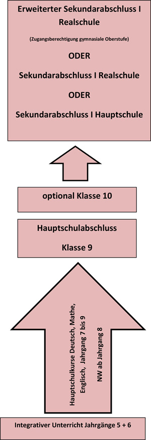 Bei entsprechenden Leistungen können höherwertige Kurse auf Realschulniveau besucht werden. Der Wahlpflichtunterricht findet für die Hauptschüler*innen ab Klasse 6 schulformübergreifend statt. Hier haben sie die Möglichkeit, individuelle Lernschwerpunkte gemäß ihren Neigungen auszubilden.