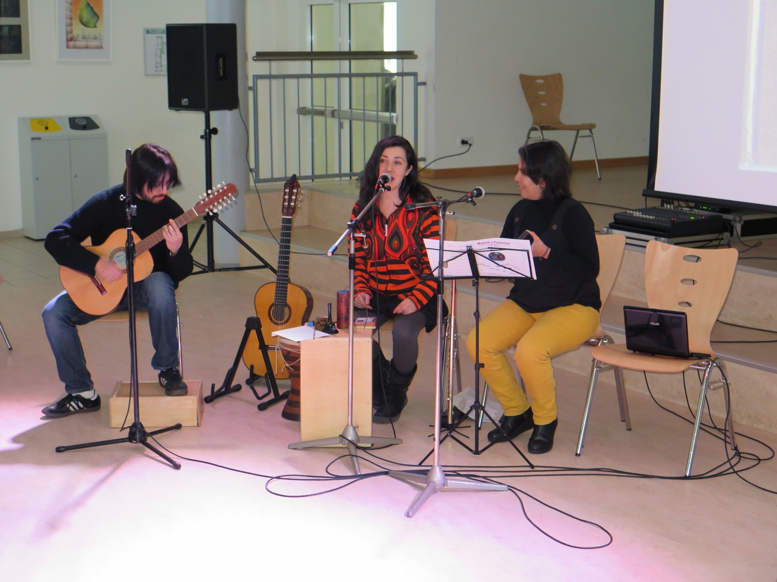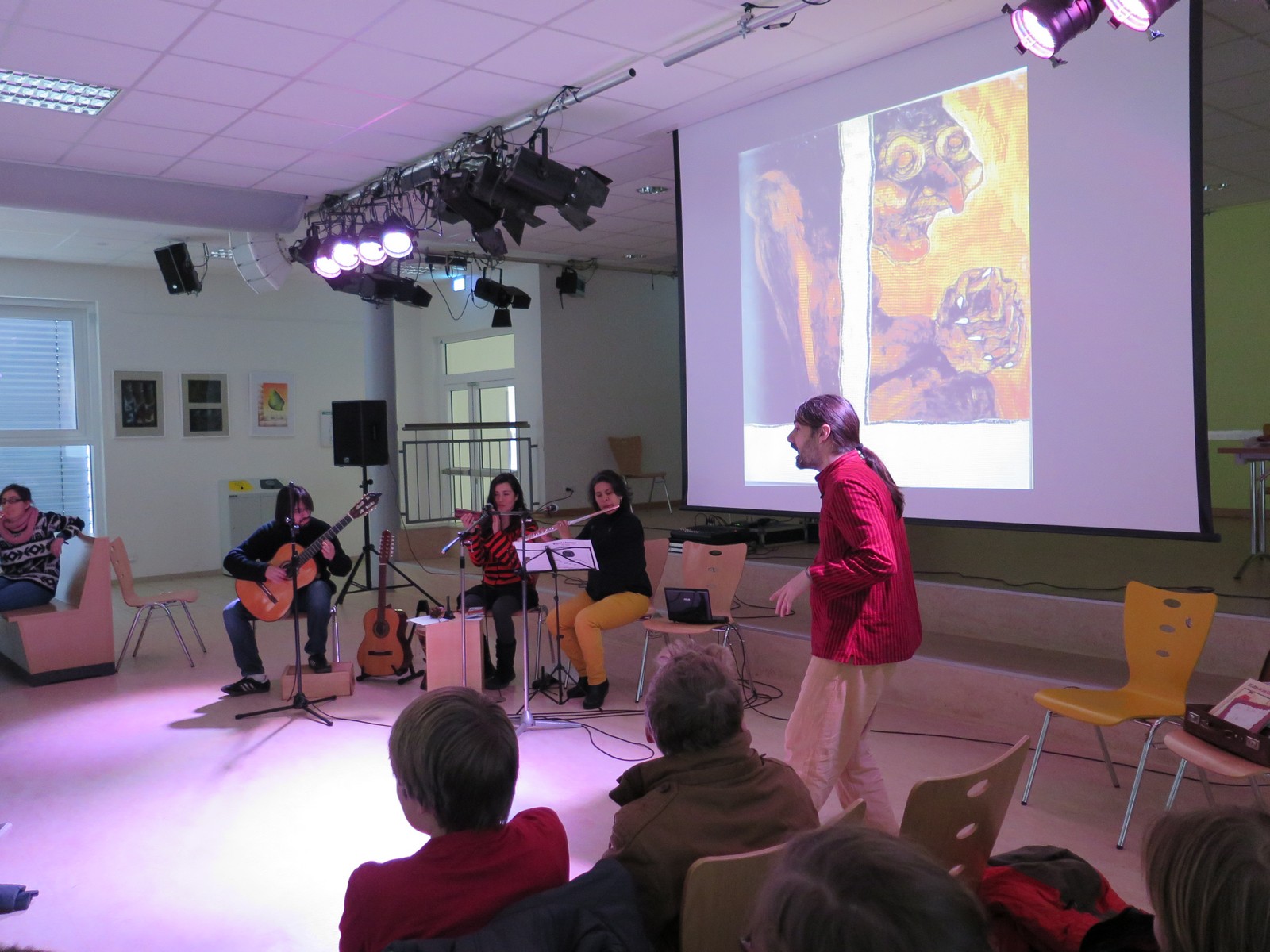 Am 23. Februar 2015 konnten die Schülerinnen und Schüler des 6. und 7. Jahrgangs der KGS Hambergen Märchen auf Spanisch erfahren. Die Künstlergruppe bestand aus Marcela, Yolanda, JoaquÌn aus Kolumbien und Jose aus Spanien, und heißt "Majunaì. Es war eine sehr schöne, gelungene Veranstaltung, aber lesen Sie selbst einige Schülerkommentare... "Ich fand es sehr gut, da man die Geschichte durch die Bilder, die Musik und die Körpersprache sehr gut verstehen konnte. Die Geschichten waren auch sehr gut. Dazu gab es noch ein paar kleine Spiele zum Mitmachen." Torben (6. Jahrgang) "Die Geschichten waren toll erzählt!!! Der Erzähler konnte gut die Geschichte erzählen. Man war richtig in der Geschichte drin und man hat alles mitgefühlt. Sie haben es sehr witzig gemacht, dass man lachen musste. Toll!" Mauricio (6. Jahrgang) "Am 23. Januar war etwas ganz Tolles in der Schule. Wir sind in die Mensa gegangen und dort haben wir uns Geschichten auf Spanisch angehört. Es war sehr schön und ich hätte nicht gedacht, dass ich so viel verstehe." Jana (6. Jahrgang) "Das "Theater Stück" hat mir sehr gut gefallen. Ich habe den größten Teil davon verstanden. Man konnte sehr viel mitmachen. Es war ein guter Schauspieler und die Musik hat mir auch sehr gut gefallen." Sophie (7. Jahrgang)