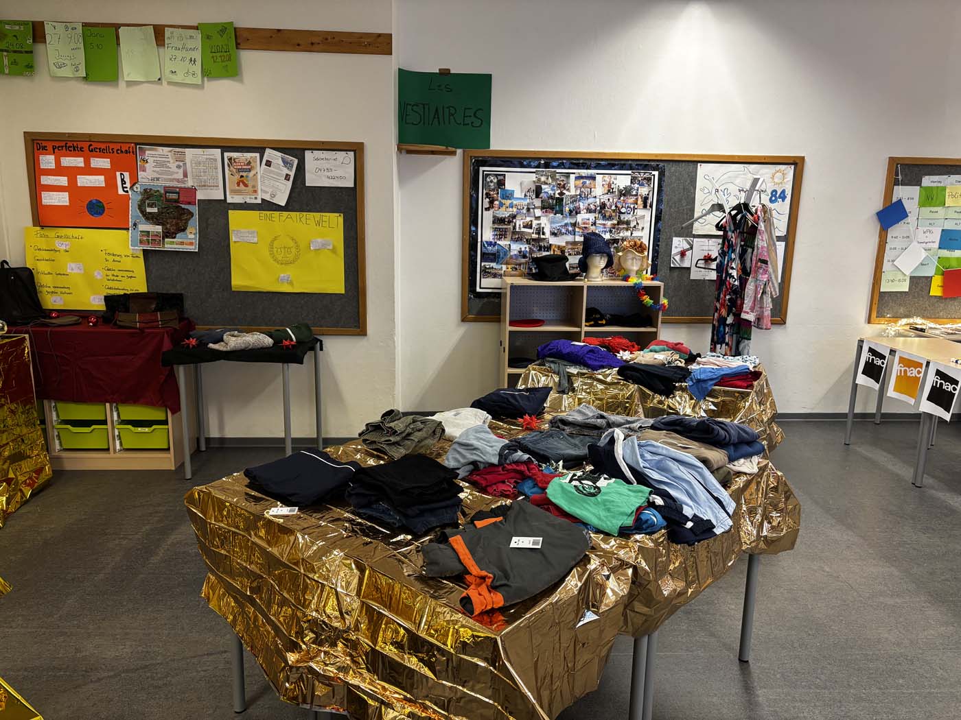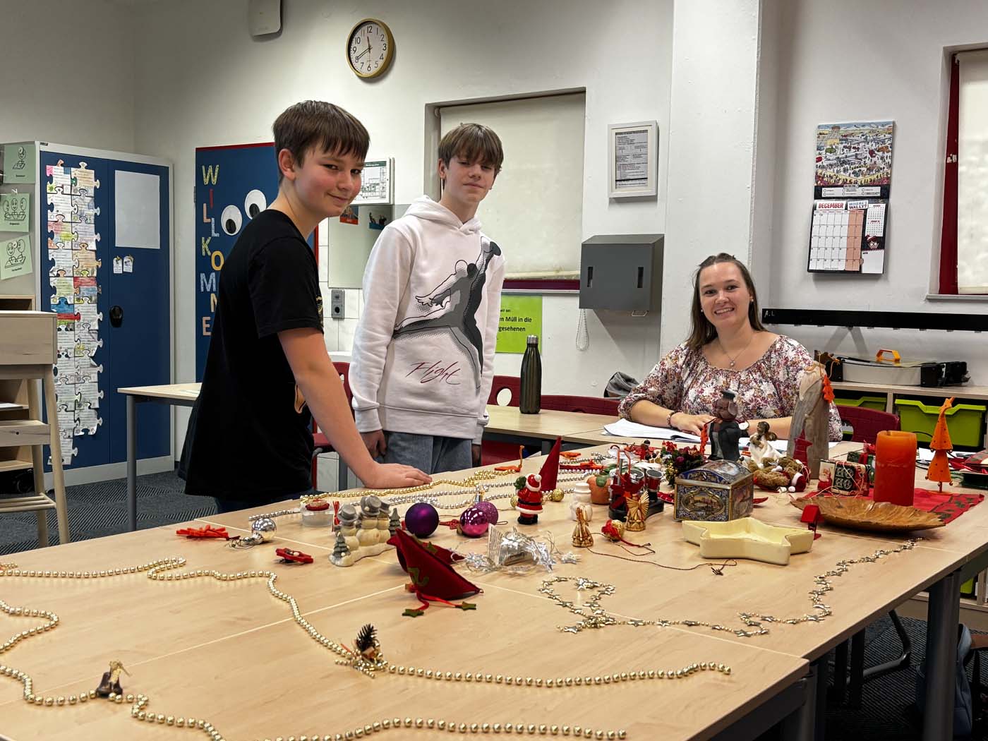 Es war wieder so weit! Der Flur oben sah ganz anders aus als sonst – überall Weihnachtsdeko! Und in den Klassenräumen waren Stände, an denen man verschiedene Sachen kaufen konnte – ein neues Sportshirt oder Christbaumkugeln gefällig? Im Sprachendorf kann man so einiges finden!
